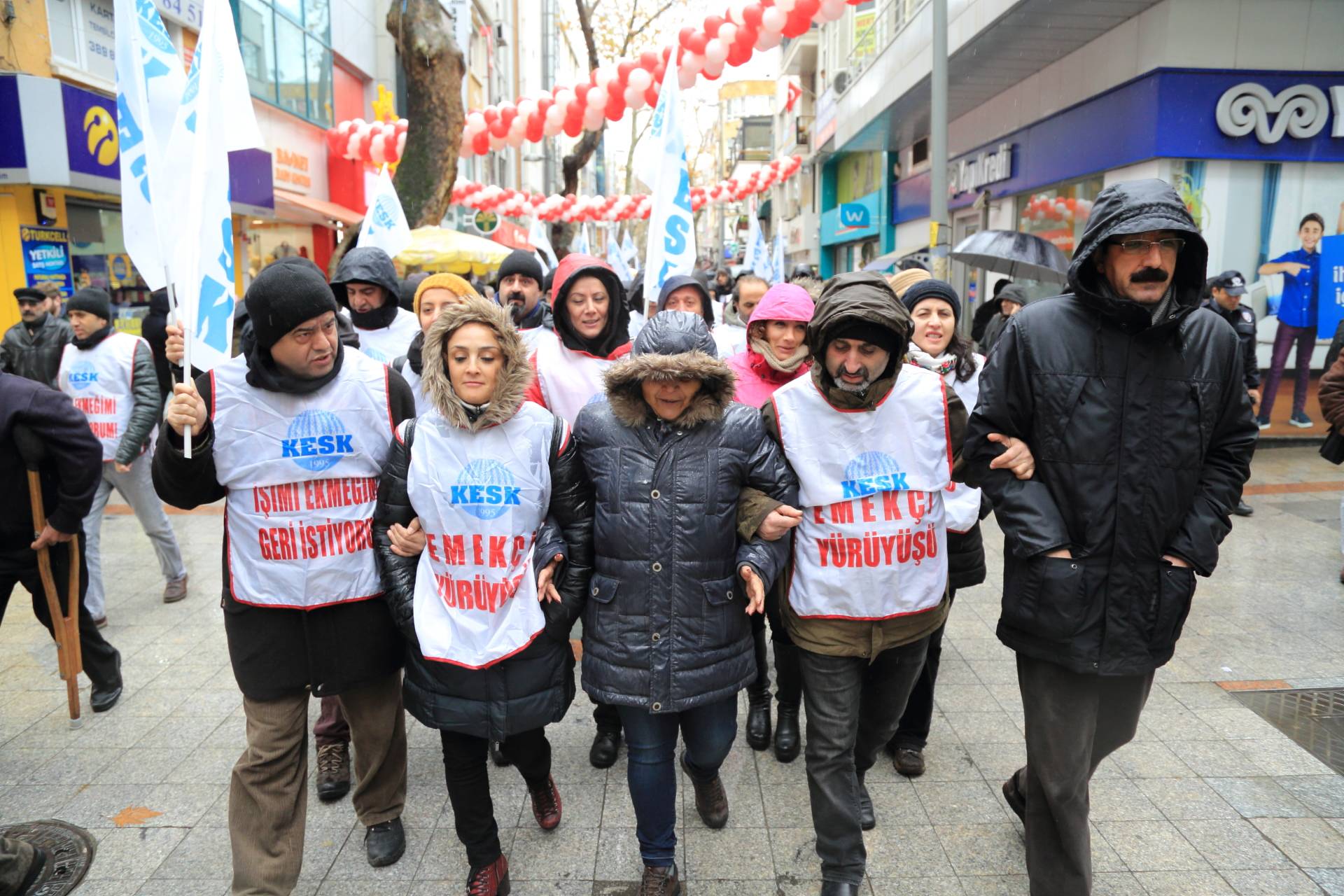 Eş Genel Başkanımız Lami Özgen’in konuşmasının ardından üye ve yöneticilerimiz “Direne direne kazanacağız”, “Zafer direnen emekçinin olacak” sloganları ile EMEKÇİ YÜRÜYÜŞÜ’ne devam etti.