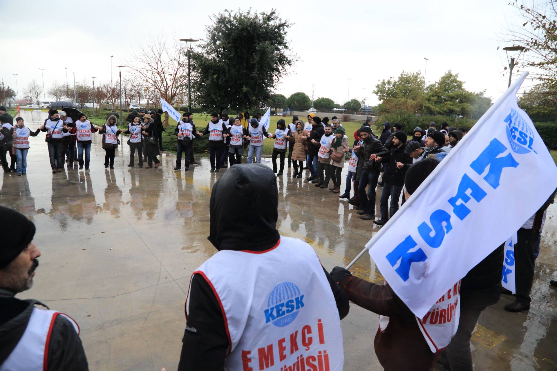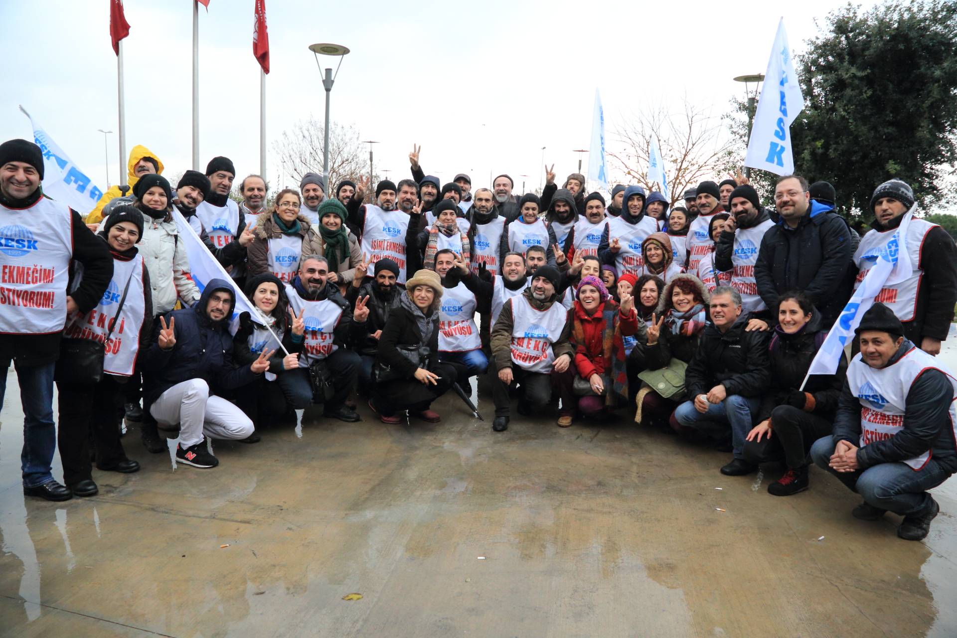 Eş Genel Başkanımız Lami Özgen “Belirli bir süredir OHAL yasasıyla, darbe ile mücadele adı altında adeta kamu emekçisi cadı avı başlamıştır. Bugün 100binin üzerinde kamu emekçisi haksız hukuksuz bir şekilde işinden atılmıştır, bunun içinde 2bin KESK üyesi de vardır. Belki birileri bu kamu emekçilerine sahip çıkmayabilir, hele hele bazı sendika ve konfederasyonlar 3 maymunu da oynayabilirler ama burdan bir kez daha şunu ifade etmek istiyoruz, biz kamu emekçileri ekmeğimizi, işimizi kazanırken hiç bir siyasi iradenin lütfuyla bunu kazanmadık, hiç kimse işimizi ve ekmeğimizi bize bahşetmedi, bunu dünden bugüne herkes bilmek zorunda. Hukuksuz bir şekilde, temel hak ve özgürlüklere aykırı, anayasayasa aykırı, uluslararası söleşmelere aykırı bir şekilde sizi işten attım, oldu bitti tutumuyla karşı karşıya kaldığımız durumu dün kabul etmedik, bugün de kabul etmedik, yarın da kabul etmeyeceğiz! Boyun eğmeden yolumuza devam edeceğiz” dedi.