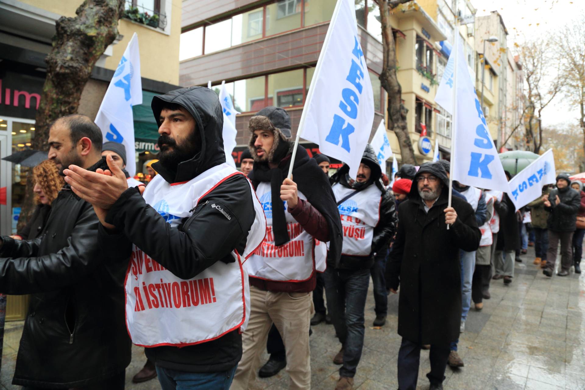 Dün Kadıköy Rıhtım’dan başlatmak istediğimiz yürüyüş, polis tarafından engellenmişti. Ancak karşılaştığımız engellemeye rağmen ihraç edilen, açığa alınan üyelerimizle bugün Ankara’ya yürümek üzere Kartal Meydanı’nda bir araya geldik.