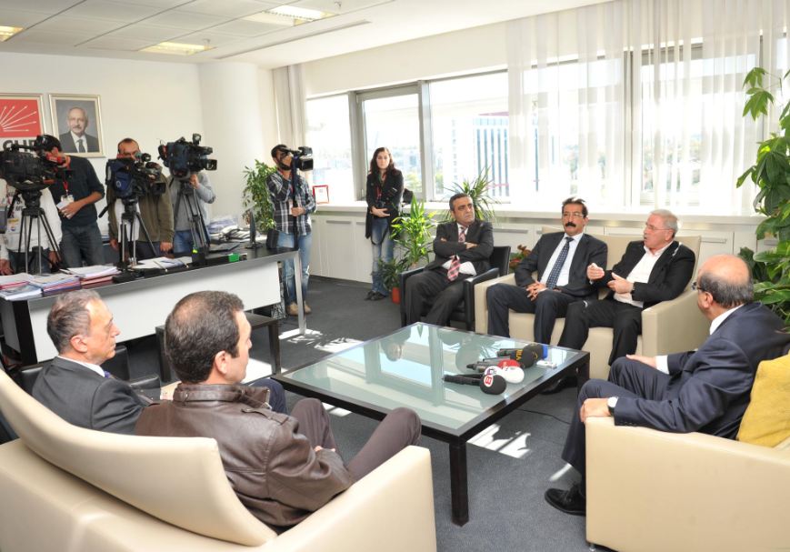 Bugün (12 Kasım 2012) cezaevlerindeki açlık grevleri ile ilgili CHP Genel Merkezi’ni ziyaret eden KESK Genel Başkanı Lami Özgen, TMMOB Genel Sekreteri N.Hakan Genç, DİSK Genel Başkanı Erol Ekici ve Türk Tabipler Birliği (TTB) Konsey Başkanı Ahmet Özdemir Aktan’ın görüşmesine CHP Genel Başkan Yardımcısı Nihat Matkap ve Sezgin Tanrıkulu katıldı.