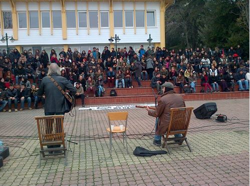 Yürüyüşün ardından sahil merdivenlerinde bir araya gelen yüzlerce GSÜ öğrencisine, üniversitelilerin yanında olduklarını açıklayan sanatçı Nejat Yavaşoğulları ve Akın Eldes de destek verdi.