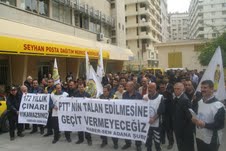 Basın Yayın İletişim ve Posta Emekçileri Sendikası (Haber-Sen) Adana Şubesi üyeleri, PTT’nin özelleştirmesine karşı PTT Adana BaşMüdürlüğü önünde basın açıklamasıyla protesto etti. "PTT’nin talan edilmesine geçit vermeyeceğiz", "172 yıllık çınarı yıkamazsınız" yazılı pankart açan HABER-SEN üyeleri, sık sık "Güvenceli iş güvenceli gelecek", "Direne direne kazanacağız", "Yağmaya, talana hırsızlığa son!", "PTT halkındır satılamaz" sloganları attı.