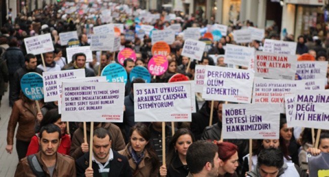 “Sağlıkta Dönüşüm Programı” ve “Kamu Hastane Birlikleri “uygulamaları ile iş yükleri katlanan, hemen her gün şiddete maruz kalan sağlık emekçileri 17 Nisan 2013 Çarşamba günü tüm yurtta grev yapacak.