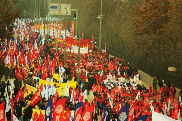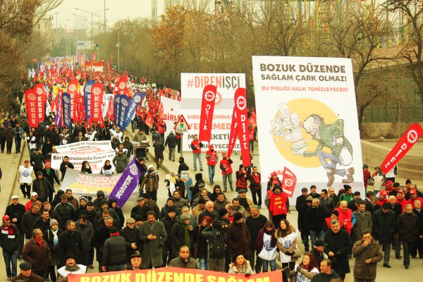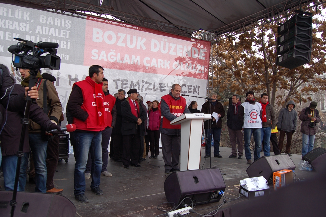 KESK, DİSK, TMMOB ve TTB‘nin çağrısıyla Türkiye‘nin dört bir yanından "Bozuk Düzende Sağlam Çark Olmaz! Bu Pisliği Halk Temizler" diyenler 11 Ocak Cumartesi günü Ankara‘da “ Özgürlük, Barış, Demokrasi, Adalet ve Emek Mitingi”nde buluştu.