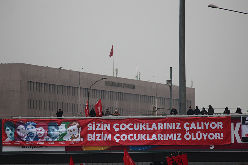 Hipodrom`da saat 09.00‘da başlayan yürüyüşte sık sık "Tek çare direniş, tek çözüm halk iktidarı", "Hırsız varrr!" ve "Bu pisliği devrim temizler" sloganları eşliğinde mitingin gerçekleştirileceği Sıhhiye Meydanı‘na doğru yürüyüşe geçildi.