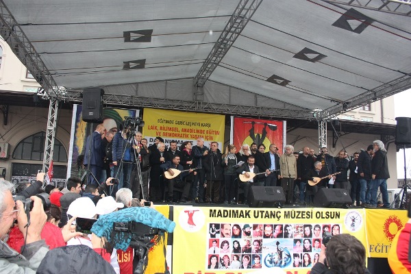 Miting sonunda aralarında Erdal Erzincan, Tolga Sağ, Sadık Görbüz‘ün de olduğu kalabalık bir sanatçı grubu sahne aldı.