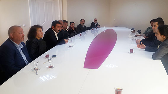 Eş Başkan Figen Yüksekdağ da “Bu saldırılarla yeni karşılaşmıyoruz. Bizi bir şiddet sarmalının içine çekmeye çalışıyorlar. Bu oyuna gelmeyeceğiz. Bilinmelidir ki HDP barajı aşmıştır. Bundan korkanlar çeşitli provakosyanlar yaratmak istemektedir. Tıpkı Diyadin’de yaşananlar gibi bu tuzağa düşmeyeceğiz. KESK’e, genel merkezimize yapmış olduğu destek ziyeretinden dolayı teşekkür ediyoruz. Bizler her zaman emekçilerle yan yana olduk ve olmaya devam edeceğiz.” dedi.