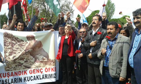 1 Mayıs Komitesi’nin çağrısıyla yüzlerce emekçi ellerinde flamaları ve karanfilleri, dillerinde 1 Mayıs sloganları ile Taksim’de bir araya geldi. Eyleme KESK, DİSK, TMMOB, TTB yönetici ve üyeleri, çeşitli siyasi parti temsilcileri ile emek ve demokrasi örgütleri de katıldı. “Taksim 1 Mayıs alanıdır”, “1 Mayıs’ta 1 Mayıs Alanı’ndayız” sloganlarının atıldığı kısa bir yürüyüşün ardından Kazancı Yokuşu başında anma programına geçildi.