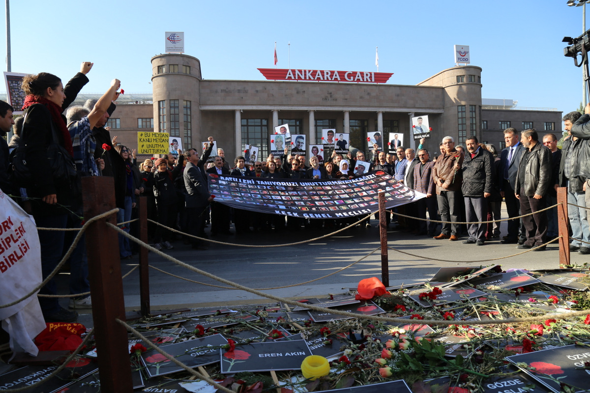 Ankara Tren Garı önünde toplanan Konfederasyonumuz Genel Meclis üyeleri saldırının gerçekleştiği alanda hayatını kaybedenlerin anısına saygı duruşunda bulunarak karanfiller bıraktılar. Burada bir basın açıklaması gerçekleştiren Eş Genel Başkanımız Şaziye Köse’nin konuşması aşağıdadır.