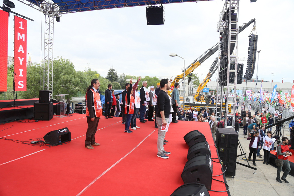 Konfederasyonumuz, DİSK, TMMOB, TTB Genel Başkan/Merkez Konsey 2.Başkanı konuşmalarında, ortak mücadele vurgusu yapıldı. “Sömürüye, Yoksulluğa, Faşizme Karşı Emek, Barış, Eşitlik ve Özgürlük İçin 1 Mayıs alanlarına diyenler, farklılıklarıyla kardeşçe bir arada yaşamak isteyenler, eşit, özgür, adil ve demokratik bir gelecek hedefleyenler pankartlarımızla, sloganlarımızla omuz omuza, yan yana bir kez daha birleşik mücadele için burada” denildi. Karanlığa, faşizme ve korku siyasetine asla teslim olunmayacağının belirtildiği konuşmalarda 1977 Taksim ve en son 10 Ekim katliamında yaşamını yitiren Barış karanfillerimizin şahsında tüm barış, emek ve demokrasi şehitlerimiz için mücadele bayrağını yere düşürmeme sözü verildi.