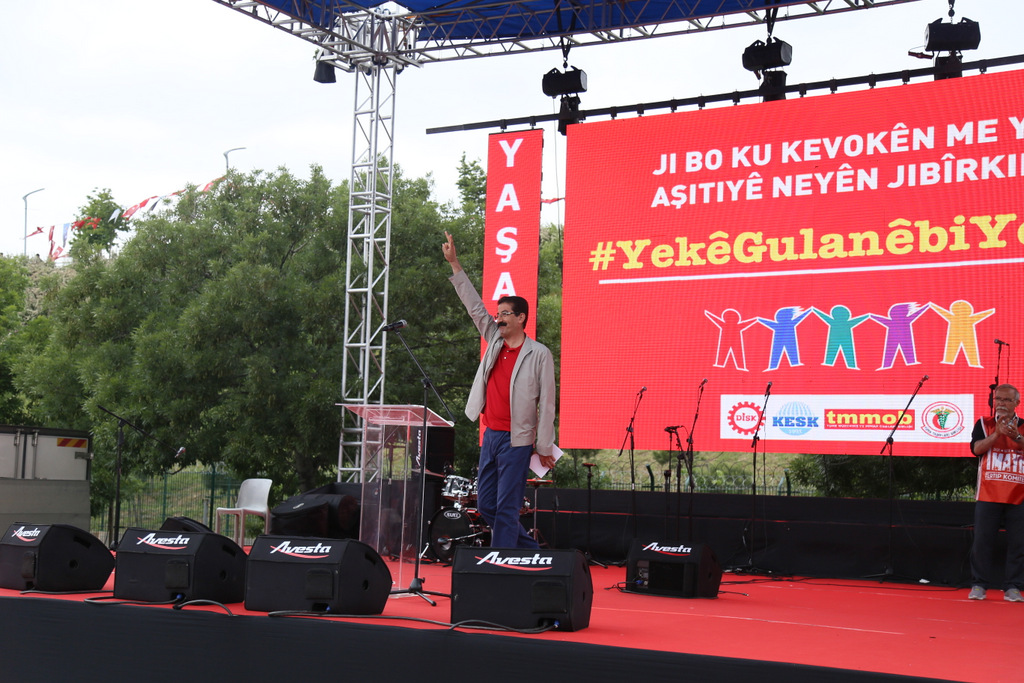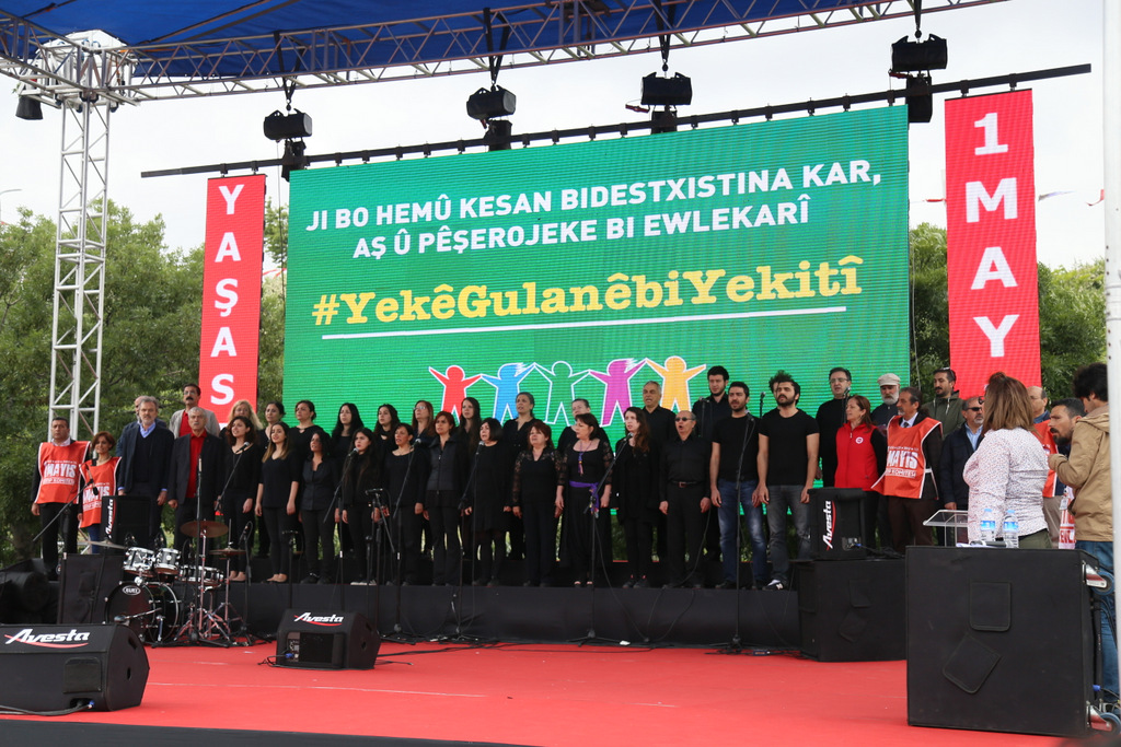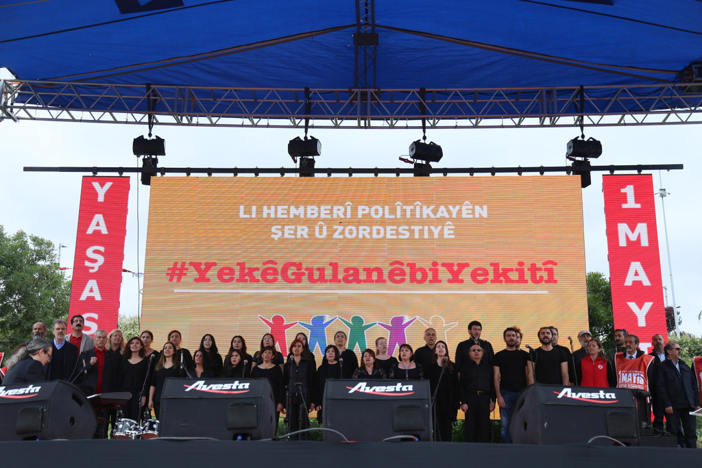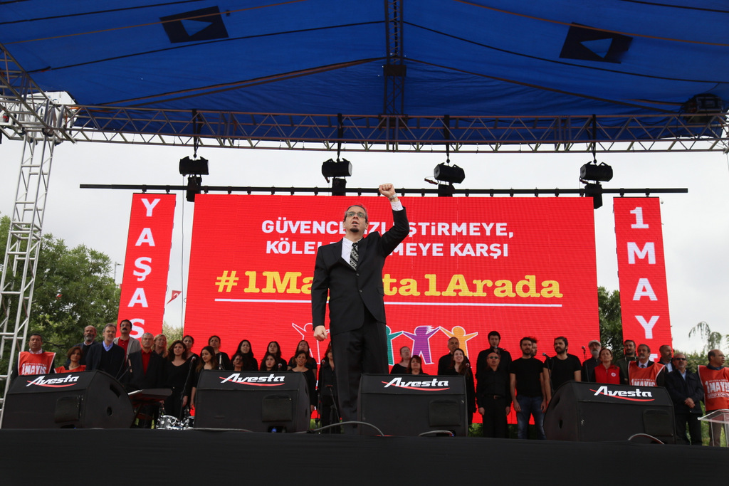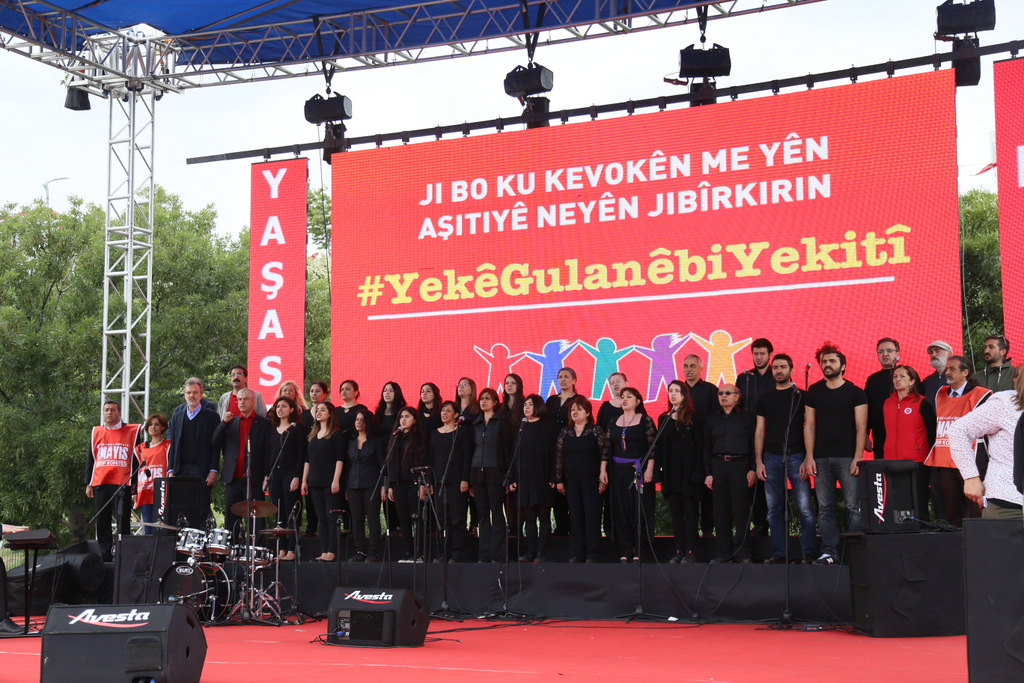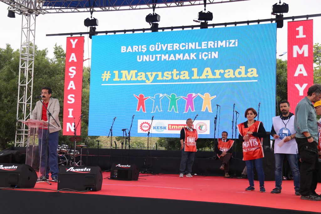 Eşitlik-özgürlük-barış-adalet-laiklik talep edenlerin, doğanın talanına karşı çıkanların, barış ve özgürlük isteyen bilim ve sanat insanlarının, savaşsız-sömürüsüz bir dünya isteyen tüm kesimlerin taleplerinin buluşma noktası olan 1 Mayıs Meydanlarında yüzbinler bir araya gelerek geleceğimizi örgütlüyoruz dedi.