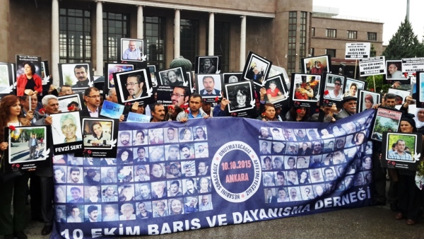 10 Ekim Ankara Katliamın 7’inci ayı nedeniyle düzenlenen anma töreni 10 Ekim Barış ve Dayanışma Derneği’nin öncülüğünde DİSK, KESK, TMMOB, TTB’nin katılımı ile Ankara Gar’ı önünde, patlamanın gerçekleştiği saat 10.04’te yapıldı.Barış güvercinlerimizin aramızdan alınışı üzerinden 213 gün geçti. Hala dosya üzerindeki giz…