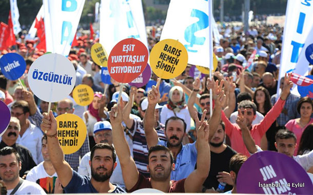 Emek ve Demokrasi İçin Güç Birliği 1 Eylül Dünya Barış Günü alan etkinliklerini İstanbul Bakırköy Halk Pazarı’nda 4 Eylül Pazar günü gerçekleştirilen miting ile sona erdirdi. Miting barış ve demokrasi mücadelesinde yaşamını yitirenlerin anısına yapılan saygı duruşu ile başladı.