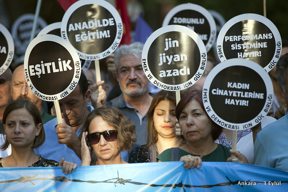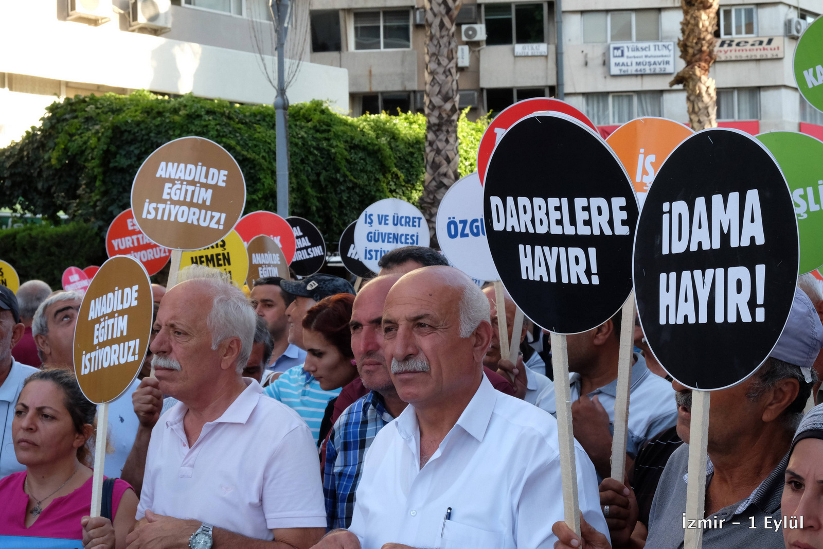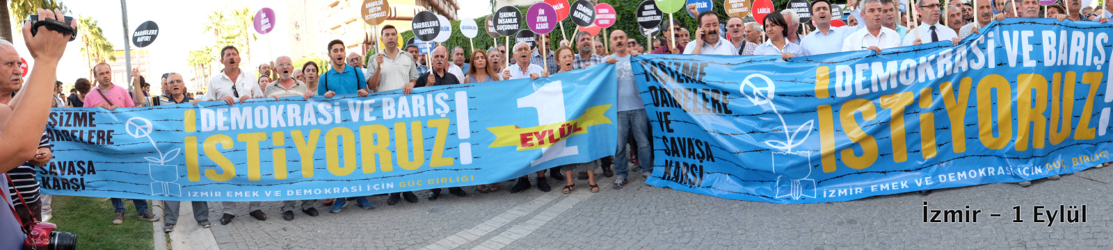 1 Eylül tarihinde, İzmir’de “Emek ve Demokrasi İçin Güç Birliği” Konak Eski Sümerbank önünde güçlü bir basın açıklaması yaptı. Gündoğdu Meydan’ında planlanan 1 Eylül Mitingi’nin Valilik tarafından OHAL bahanesiyle engellenmesi protesto edildi. Burada bir açıklama yapan KESK İzmir Şubeler Platfotmu Dönem Sözcüsü Hasan Ali Kılıç, her gün kentlerin yakılıp yıkıldığını ifade ederek, barışı savunanların bir araya gelerek sesini yükseltmesi gerektiğini söyledi. Barışın yakın olduğunu belirten Kılıç, “Bugün buradan ülkenin ve dünyanın dört bir yayına sesleniyor ve barış diyoruz” dedi.