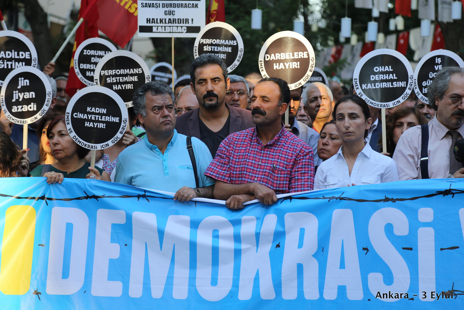 Basın açıklamasında AKP’nin dış politikasının iflas etmesinin sonucu olarak her bölgede güvenlik zafiyeti yaşandığı belirtildi. Darbe girişiminin ertesi 25 gün meydanlara çıkanlar için güvenlik zaafiyetinin olmadığı buna karşın 1 günlük demokrasi barış mitingimizde neden IŞİD tehtidinin olduğu sorulduğu açıklamada Meclis’in devereden çıkarılarak KHK’ler ile ülkenin yönetilmeye çalışılmasından vazgeçilmesi, OHAL’in derhal kaldırılması gerektiği belirtildi.