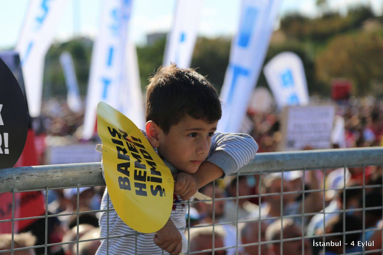 1 Eylül tarihinde başlayan ve 4 Eylül Pazar günü İstanbul Bakırköy Mitingi ile sona eren 1 Eylül Dünya Barış Günü etkinlikleri için onbinler “Faşizme, Darbelere ve Savaşa Karşı; Demokrasi ve Barış İstiyoruz” şiarıyla ülkenin birçok yerinde çeşitli eylem ve etkinlikler gerçekleştirdi. Alan eylemlerimiz kimi yerlerde OHAL ve güvenlik bahanesiyle yasaklanmak istense de “Emek Ve Demokrasi İçin Güçbirliği” barış talebini güçlü bir şekilde alanlara taşıdı!