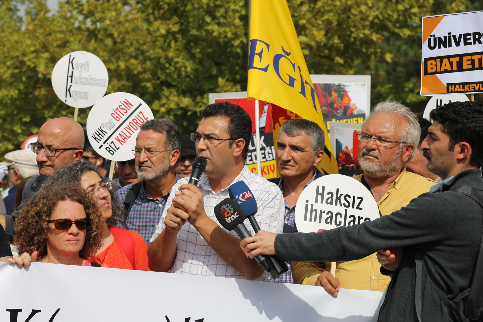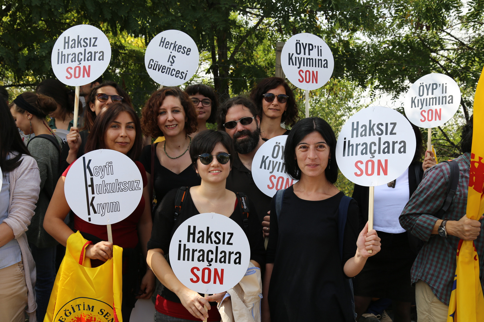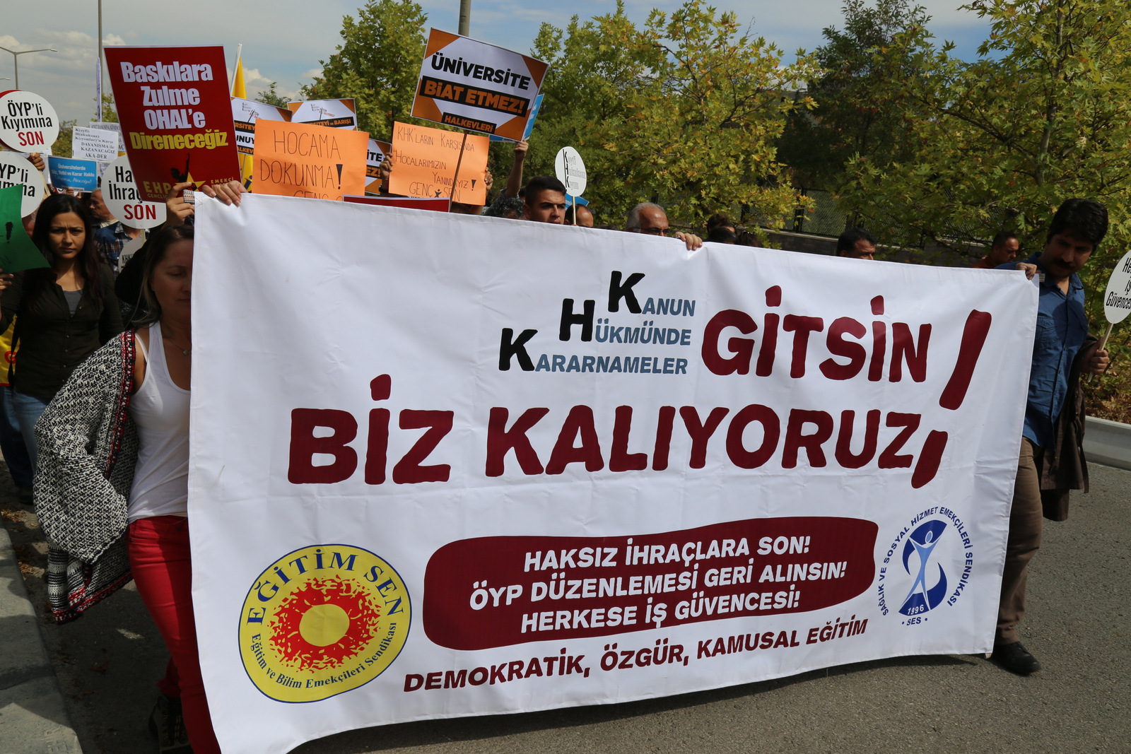 - İhraç edilenler ve açığa alınanlar görevlerine iade edilene, ÖYP düzenlemesi geri alınana ve herkes için iş güvencesi sağlanana kadar mücadelemizi sürdüreceğiz.