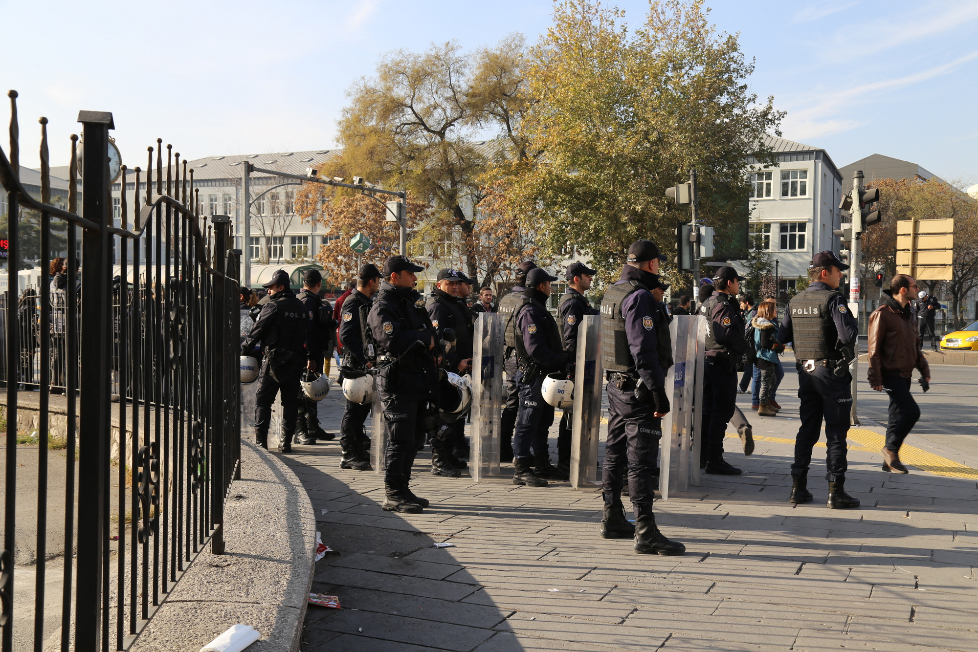 Siyasi iktidarın darbe fırsatçılığı üzerinden hayata geçirdiği anti demokratik ve hukuk dışı uygulamalar, baskı ve gözaltılar artarak sürüyor. Bugün Ankara Kolej meydanında “25 Kasım Kadına Yönelik Şiddete Karşı Mücadele Günü” yürüyüşü başlangıcında polis saldırısı yaşanmış ve aralarında Eğitim Sen Genel Merkez Kadın Sekreteri Ebru Yiğit’in de bulunduğu 11 kadın zor kullanılarak gözaltına alınmıştır.