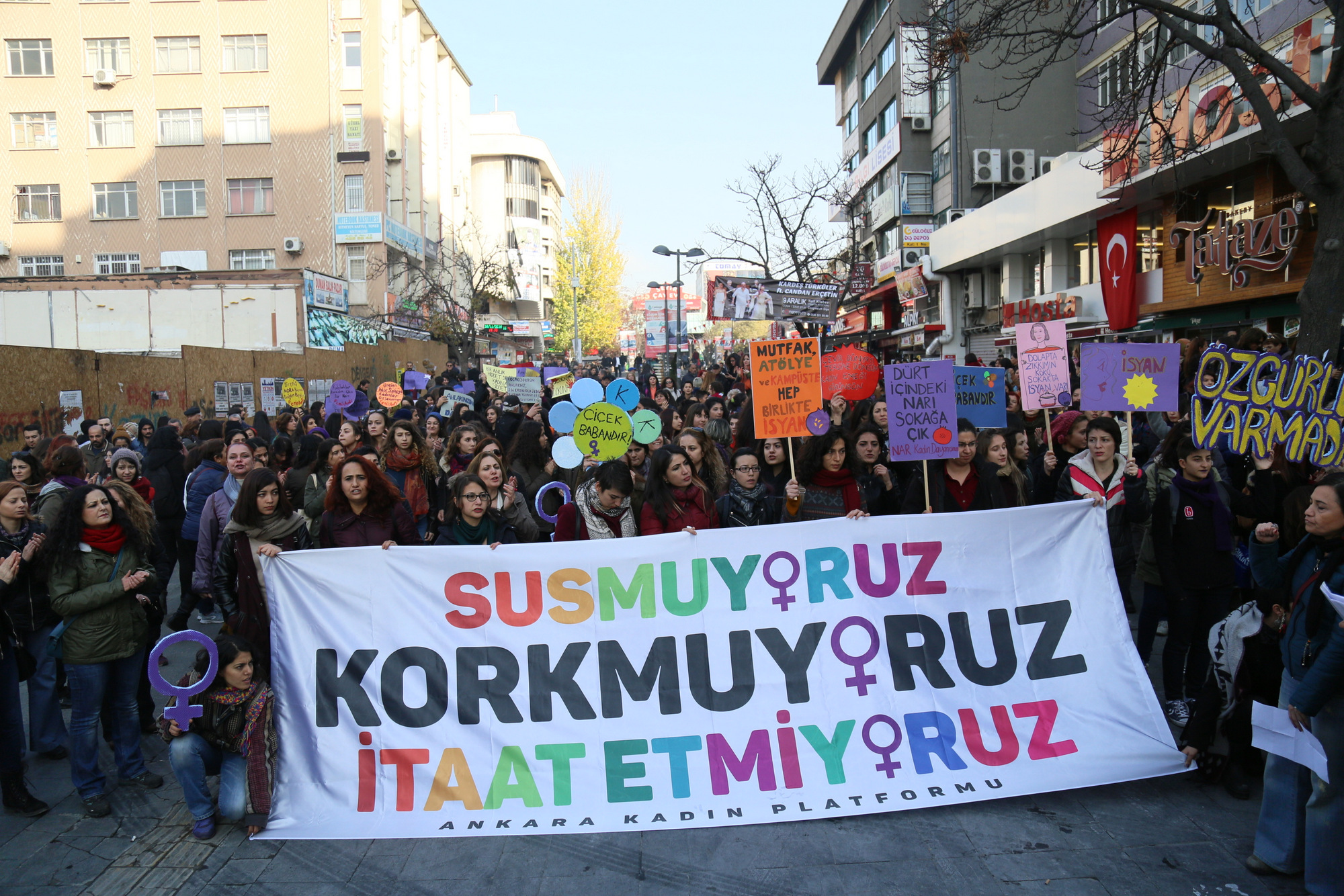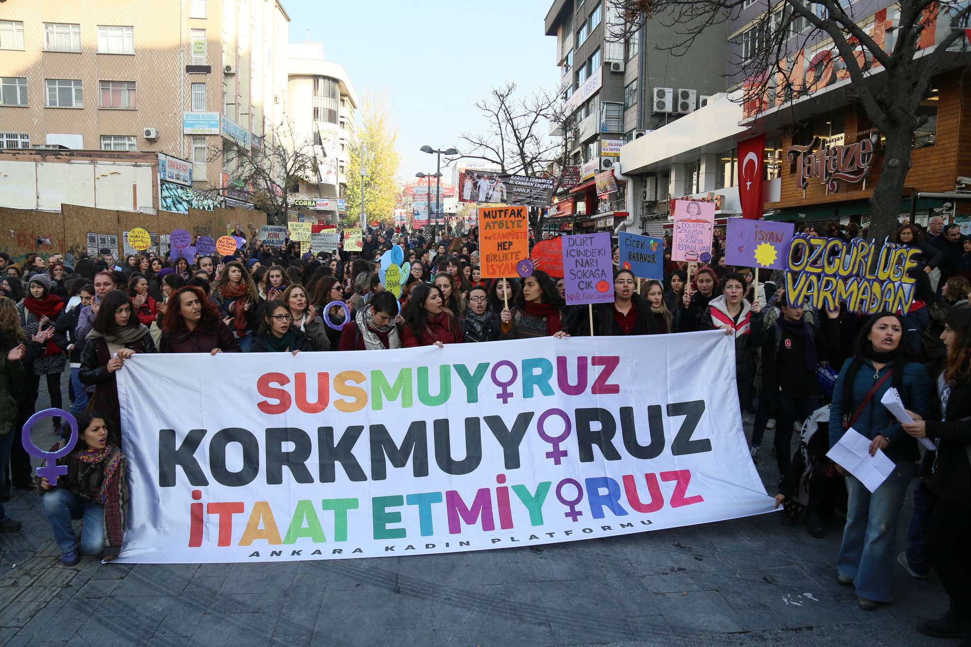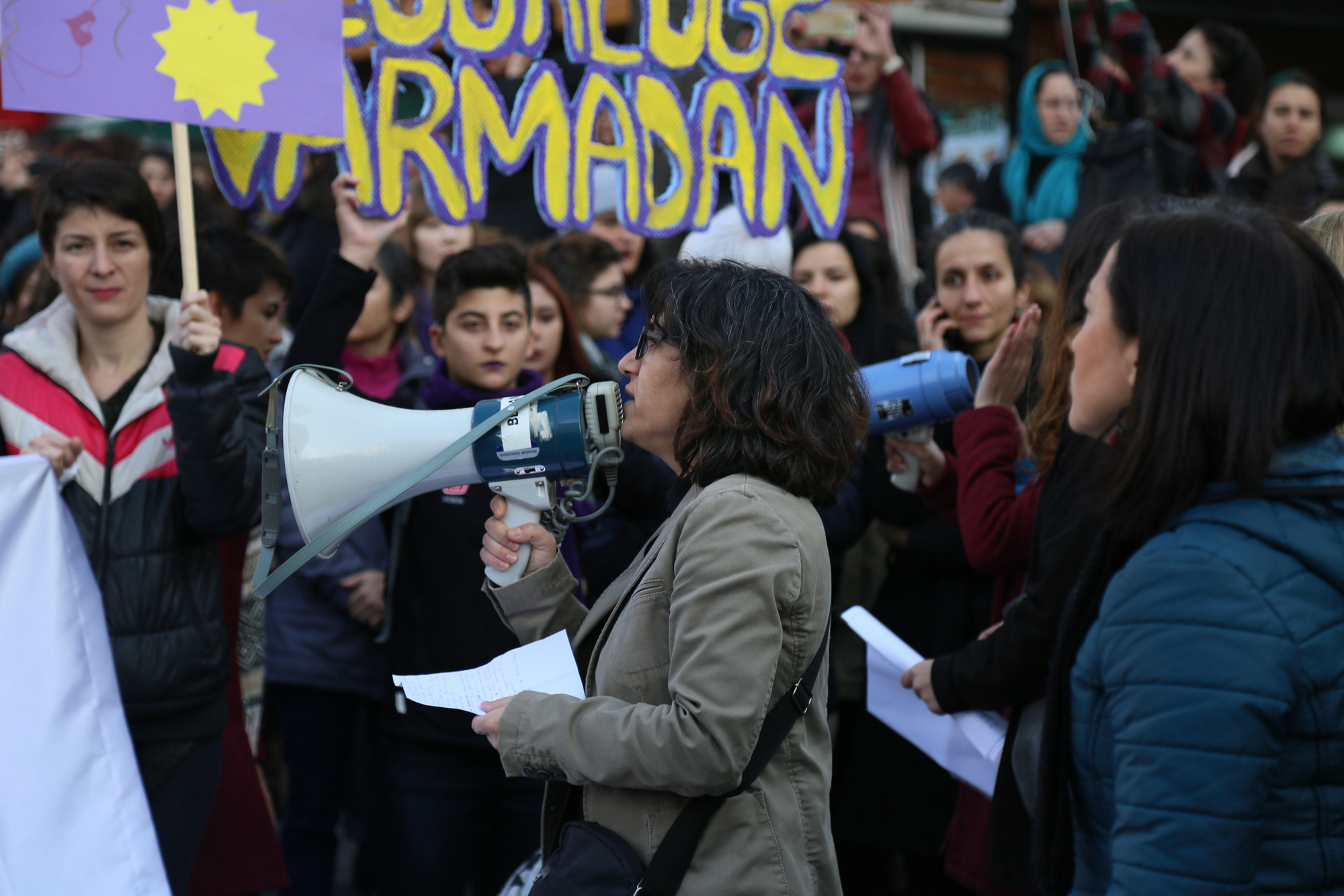 Kadına yönelik şiddet ve çocuk istismarı konusunda toplumun taleplerine kulaklarını tıkayan ve tarihin en karanlık siciline sahip olan AKP’nin, “25 Kasım Kadına Yönelik Şiddete Karşı Mücadele Günü” yürüyüşüne bile tahammül etmemesi, iktidarın kadın düşmanı yüzünü tüm çıplaklığı ile gözler önüne sermektedir. Gözaltına alınan kadınların derhal serbest bırakılmasını talep ediyoruz.