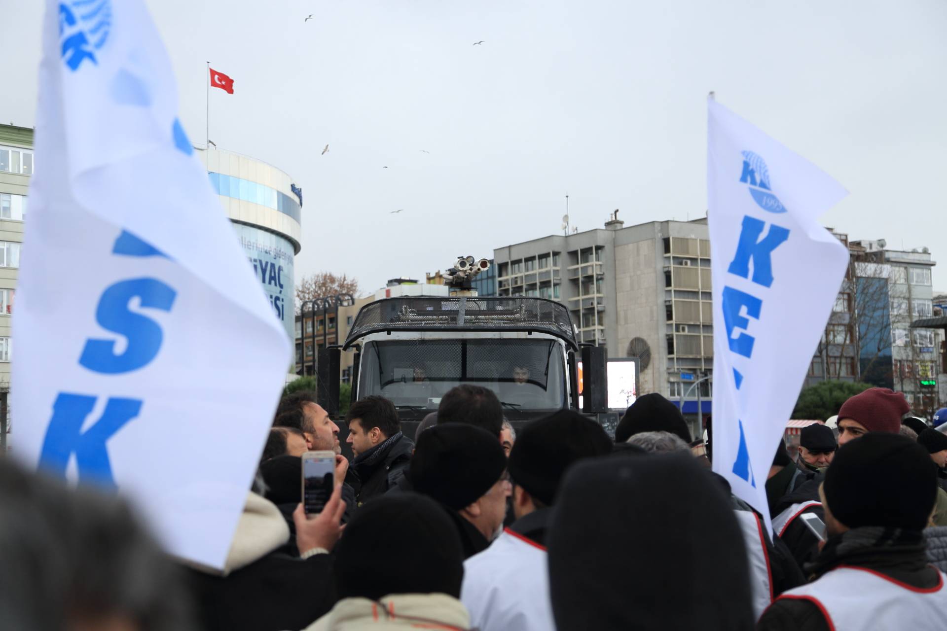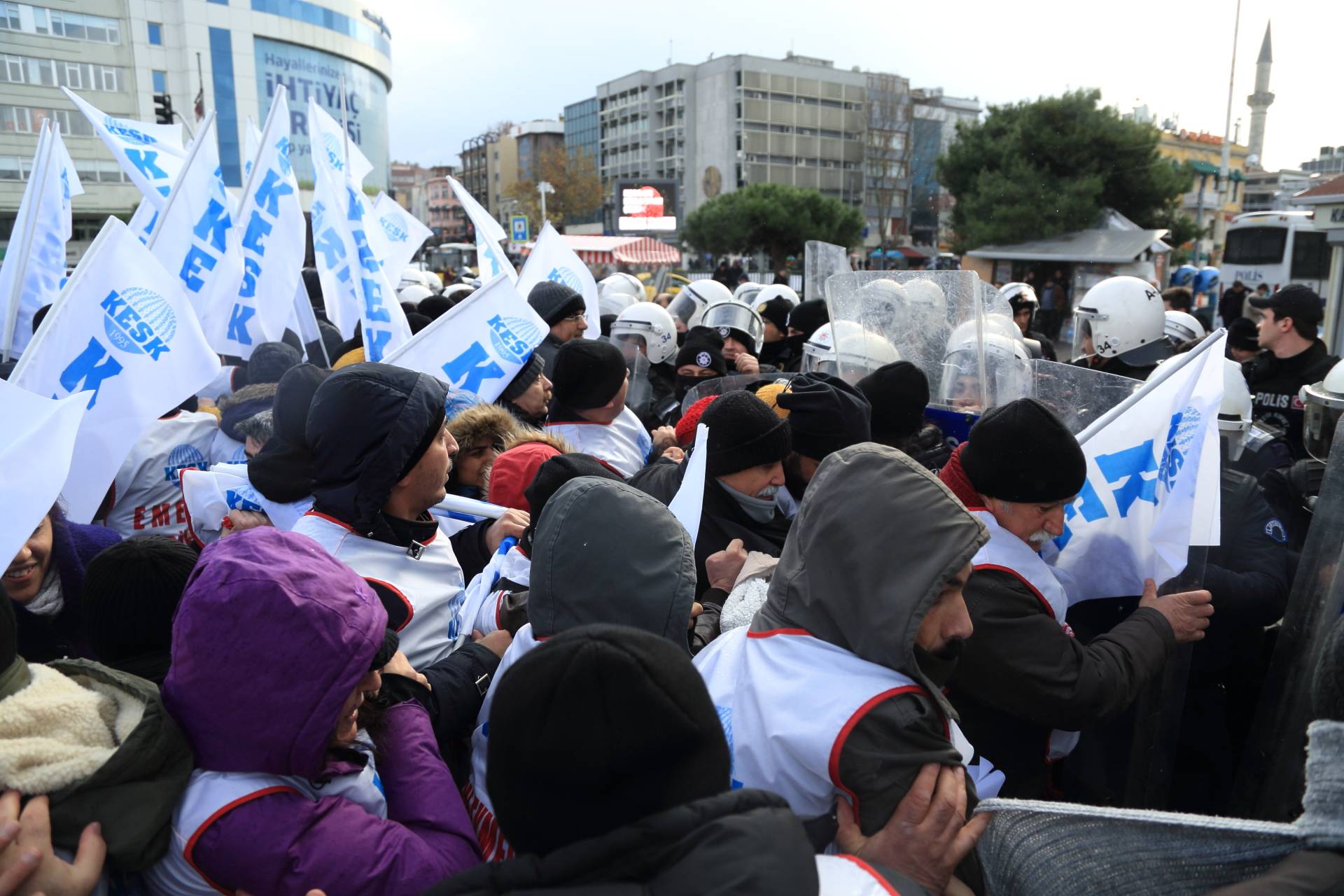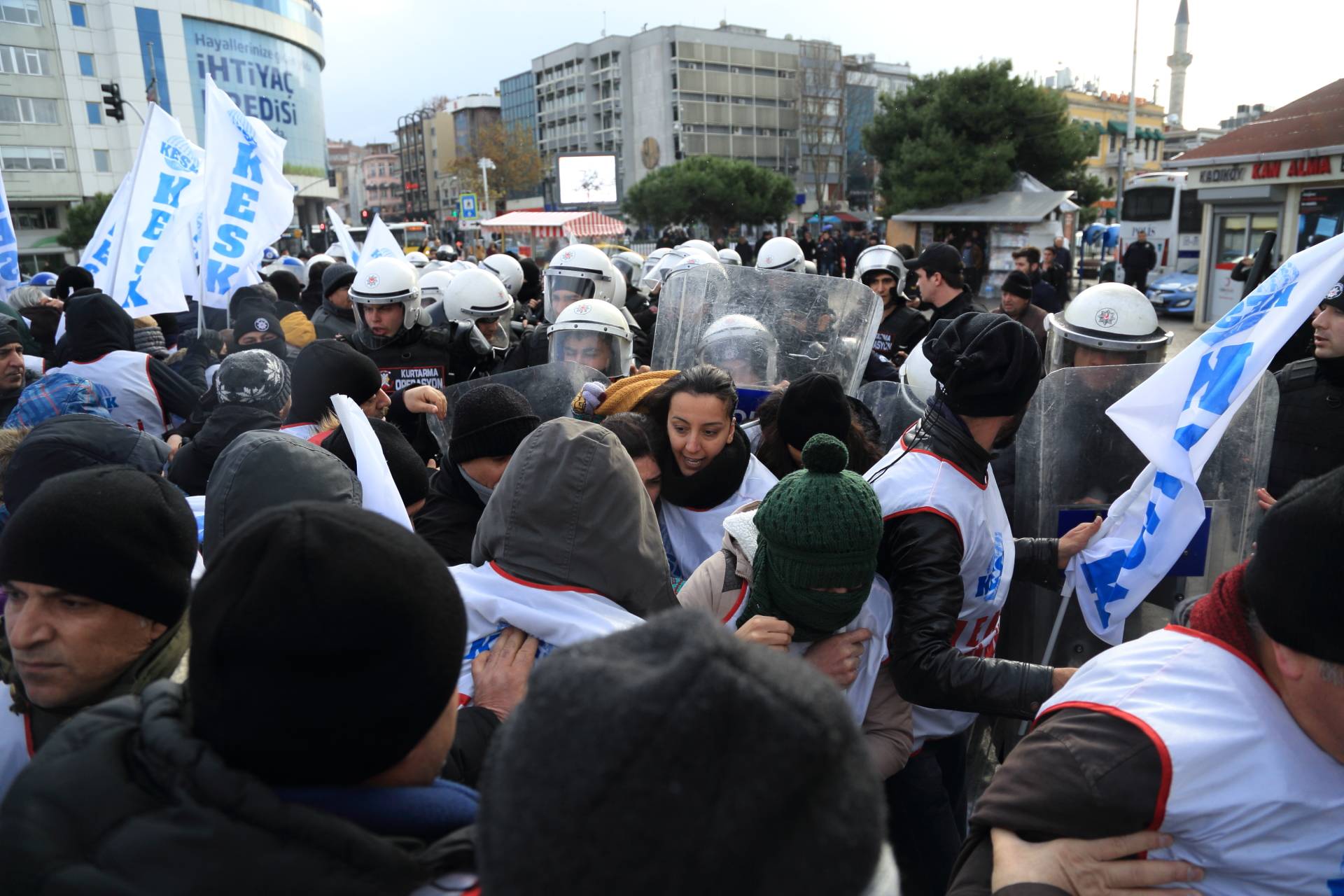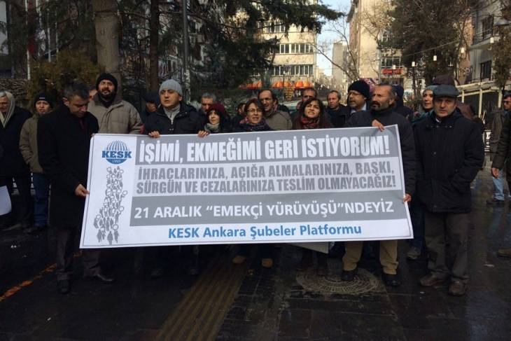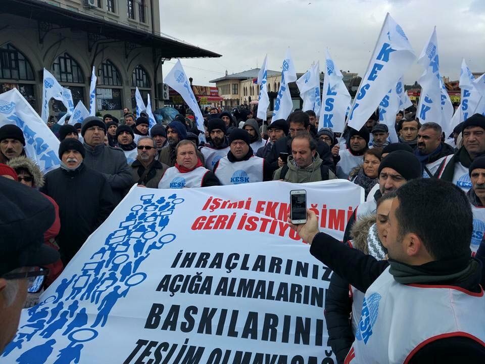 “İşimi Ekmeğimi Geri İstiyorum” sloganı ile ihraç edilen ve açığa alınan kamu emekçilerinin görevine iade edilmesi amacıyla 21 Aralık tarihinde İstanbul’dan başlayıp Ankara’da sona erecek olan “EMEKÇİ YÜRÜYÜŞÜ”müzün başlangıç noktası olan Kadıköy İskele Meydanı’nda gerçekleştirilen açıklama sonrası saat 13.00’da polis müdahalesi yaşandı.