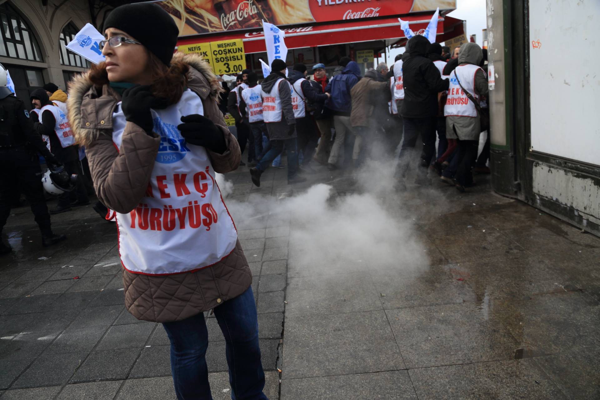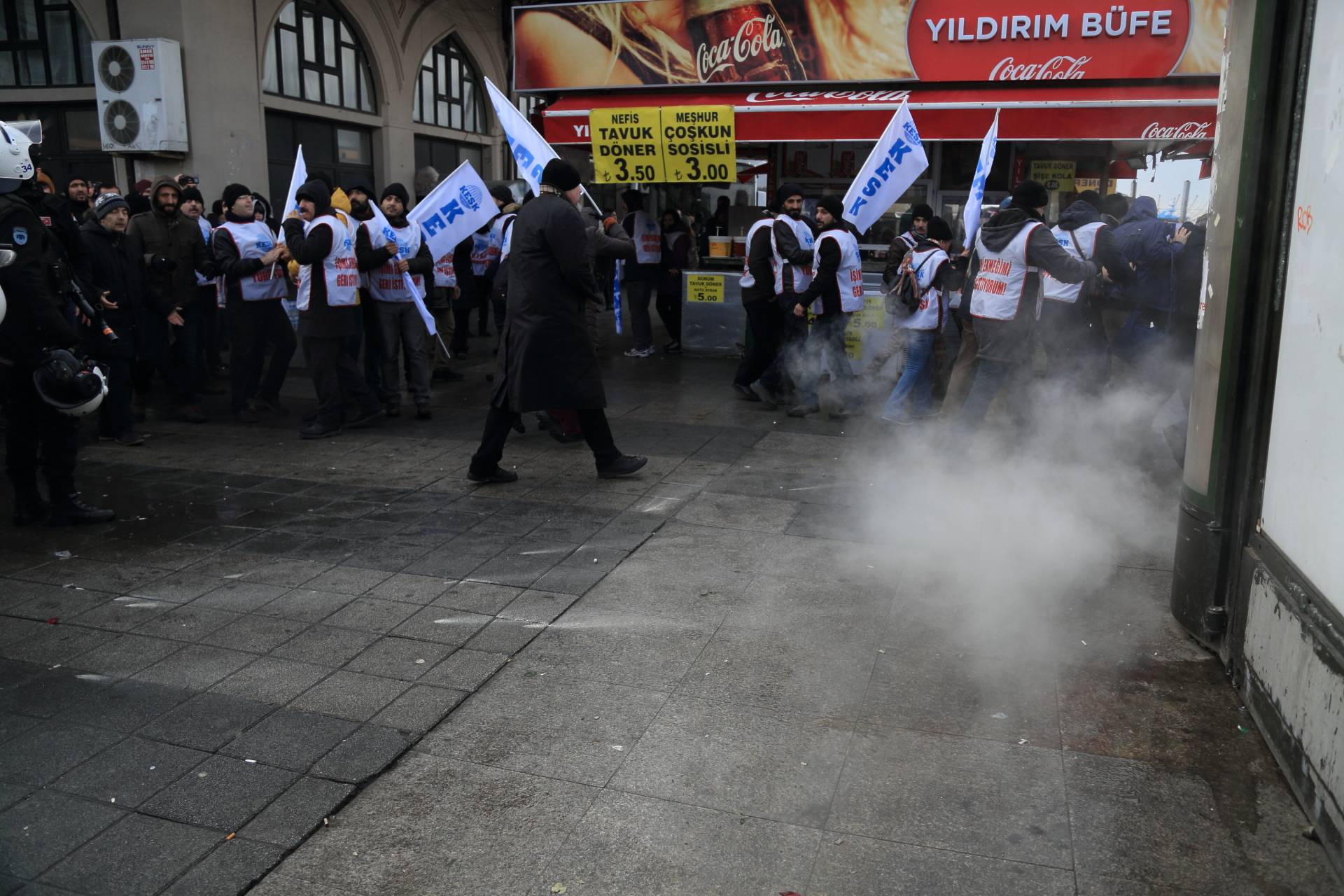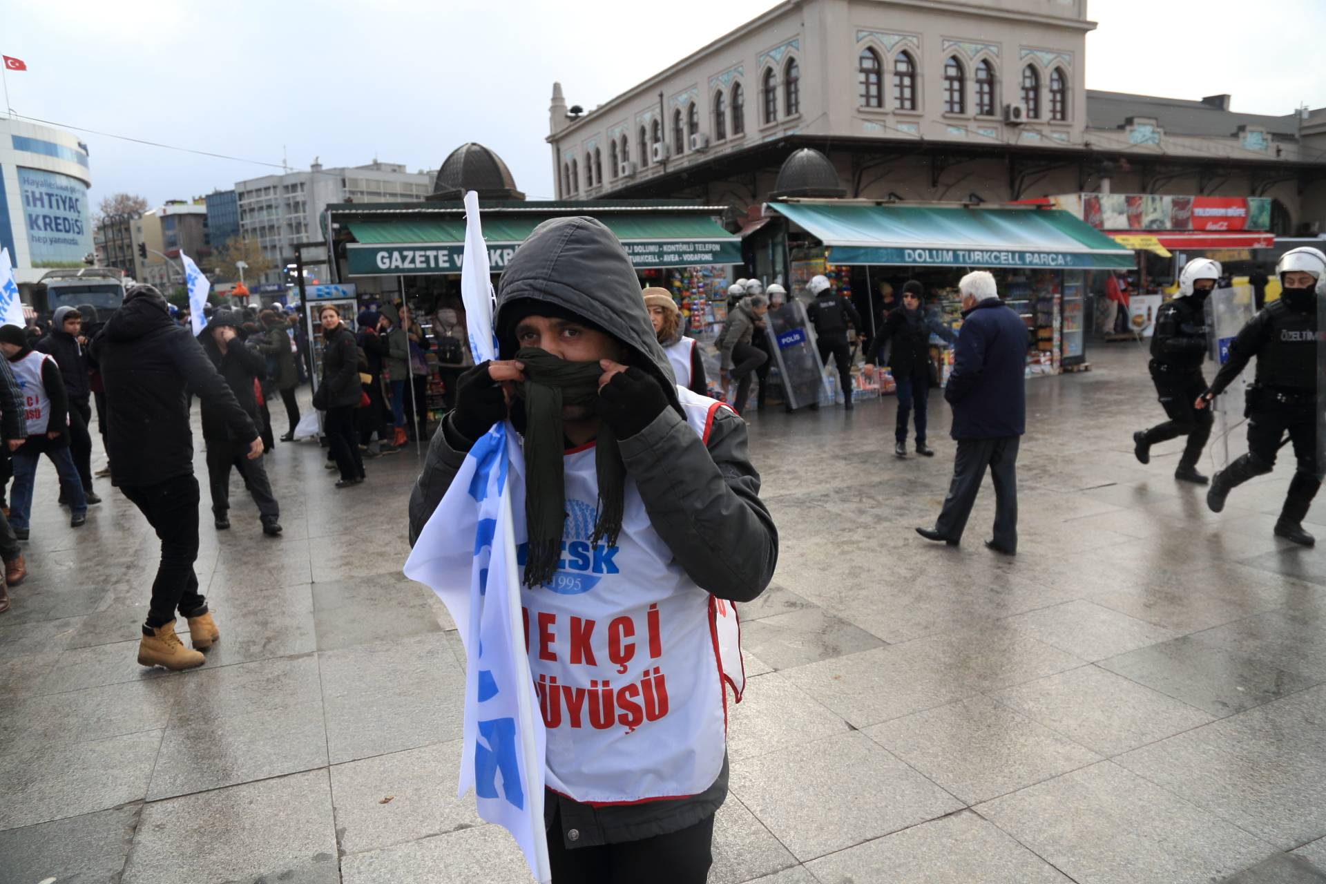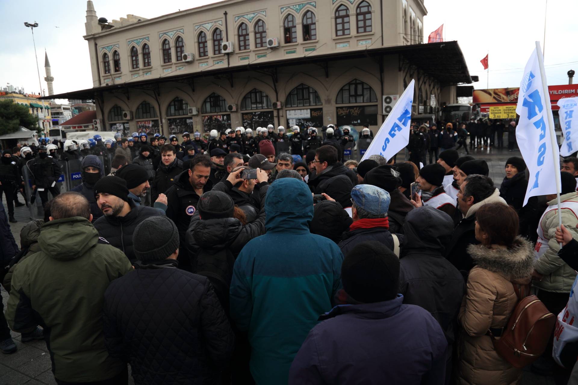 “İşimi Ekmeğimi Geri İstiyorum” sloganı ile ihraç edilen ve açığa alınan kamu emekçilerinin görevine iade edilmesi amacıyla 21 Aralık tarihinde İstanbul’dan başlayıp Ankara’da sona erecek olan “EMEKÇİ YÜRÜYÜŞÜ”müzün başlangıç noktası olan Kadıköy İskele Meydanı’nda gerçekleştirilen açıklama sonrası saat 13.00’da polis müdahalesi yaşandı.