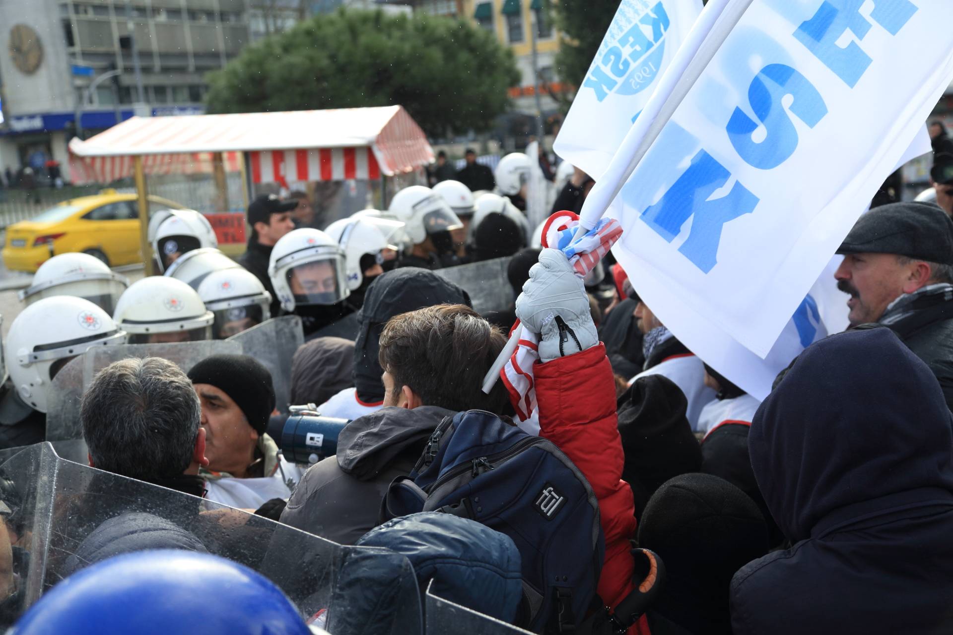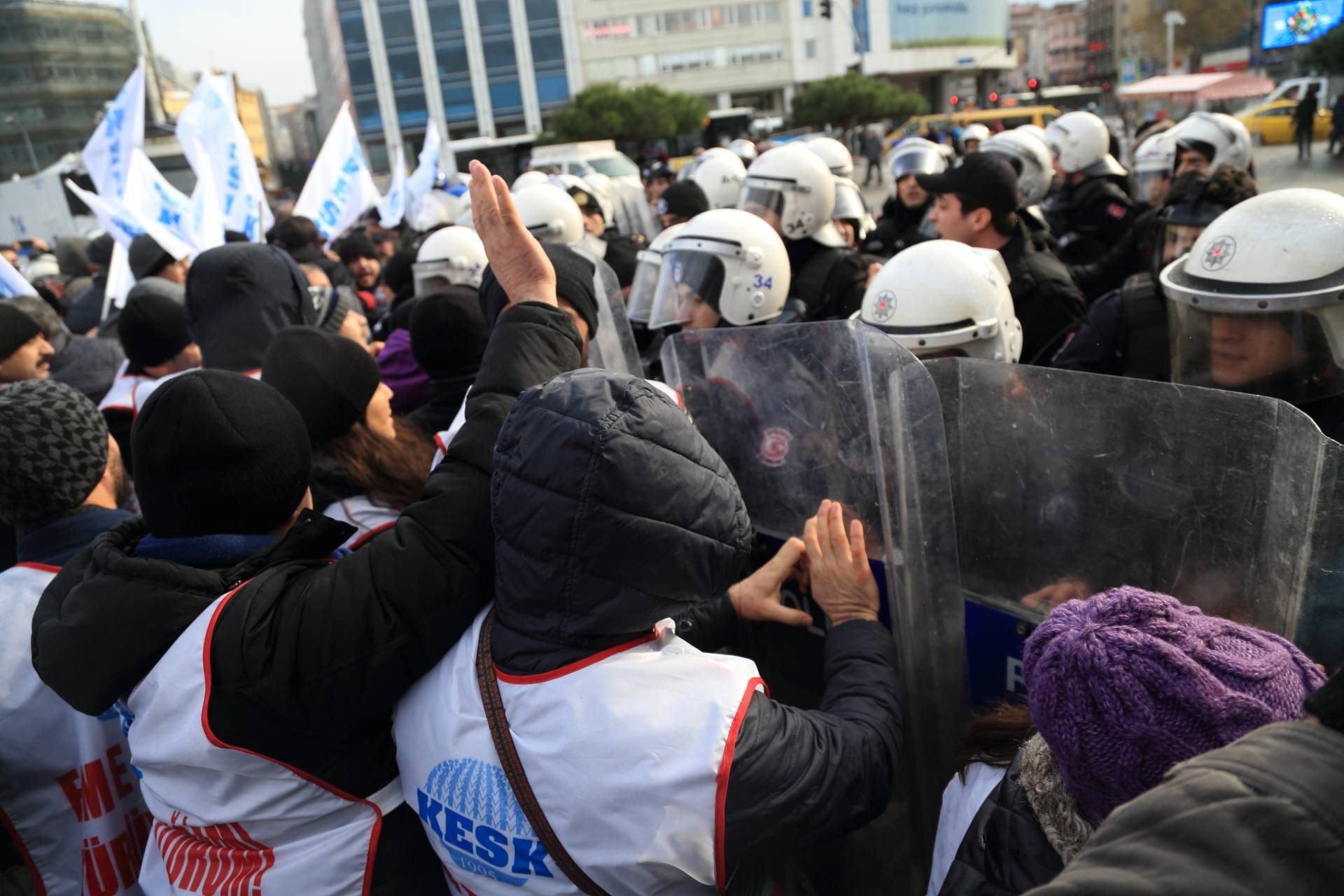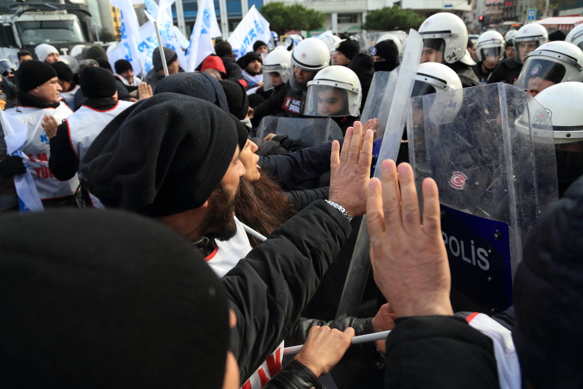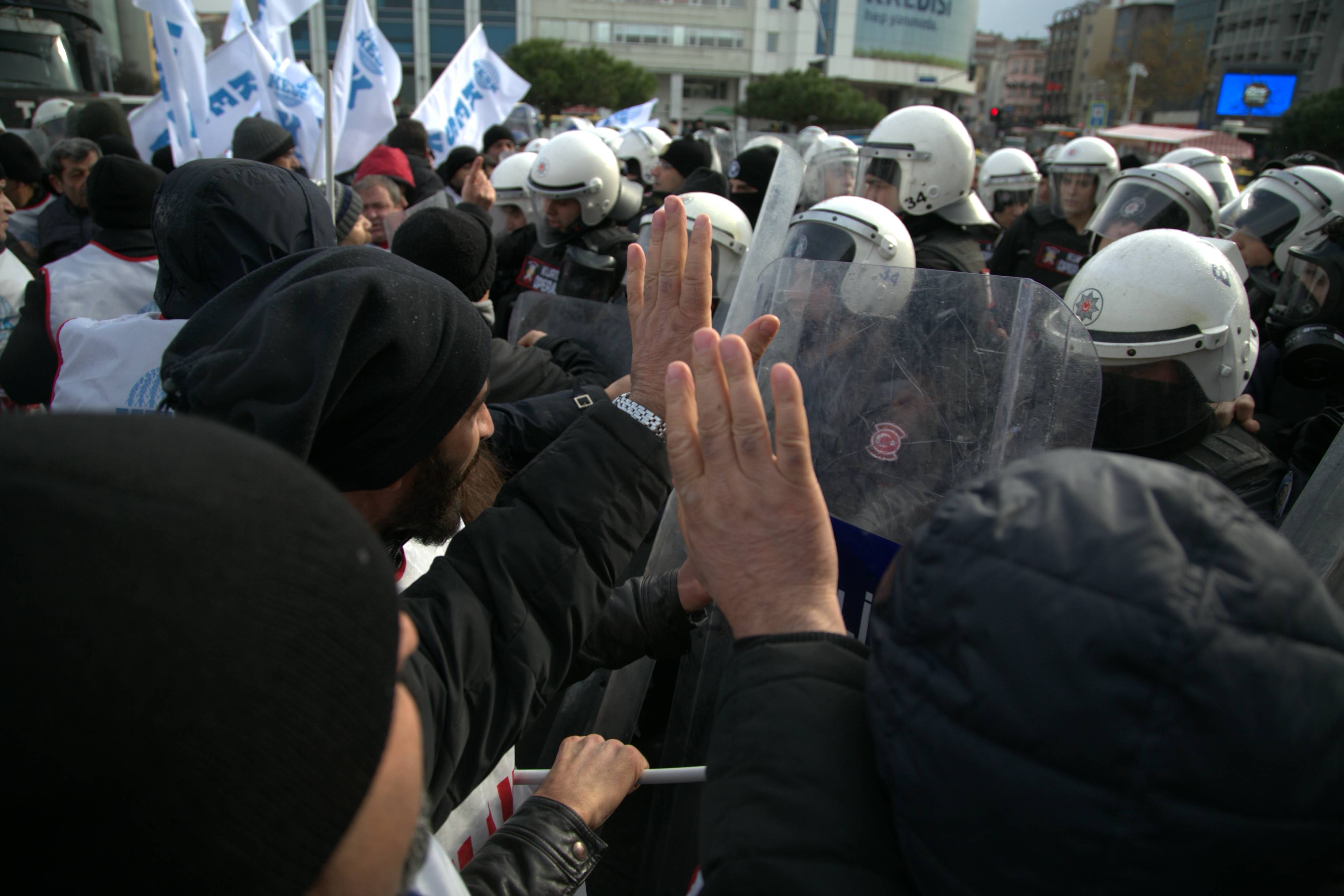 İstanbul SES Anadolu Şb. Başkanımız Erdal Güzel’in yaralandığı müdahalede Konfederasyonumuz üye ve yöneticilerine biber gazı, cop, kalkan ve plastik mermi ile saldıran polisin tutumu protesto edildi.