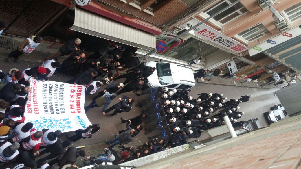 Konfederasyonumuzun ihraç edilen ve açığa alınan kamu emekçilerinin görevlerine iadesi için İstanbul Kadıköy’den ‘İşimi, ekmeğimi geri istiyorum’ şiarı ile başlattığı EMEKÇİ YÜRÜYÜŞÜ İzmit’te de polis engeliyle karşılaştı.