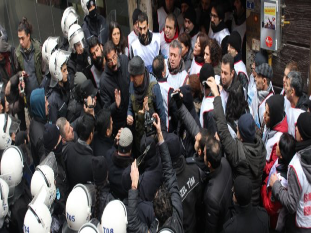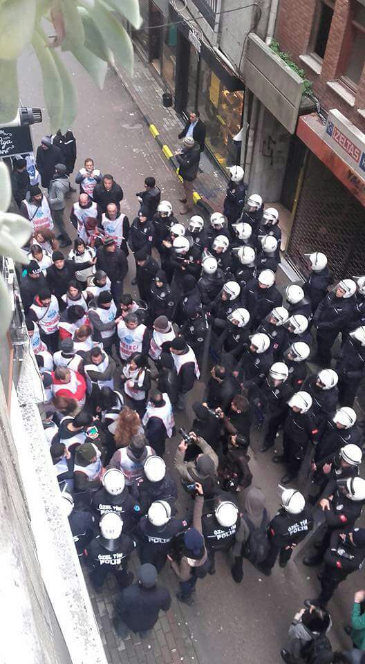 Bugün 11.00’da İZMİT Eğitim-Sen önünden yürüyüşe devam etmek isteyen üye ve yöneticilerimiz, polis engeliyle karşılaştı. EMEKÇİ YÜRÜYÜŞÜ’ne katılanlardan pankart açmamalarını, önlüklerini çıkarmalarını ve slogan atmamalarını isteyen polisin sendikal hak ve özgürlükleri hiçe sayan tutumu karşısında EMEKÇİ YÜRÜYÜŞÜ’ne katılan üye ve yöneticilerimiz Eğitim Sen önünden pankart açarak yürümeye başladı. “Direne Direne Kazanacağız!” Emekçiye Değil, Çetelere Barikat” “Faşizme Karşı Omuz Omuza” sloganlarını atarak yürüyüşe geçen emekçilere ise polis müdahalede bulunarak pankarta el koydu. Polis müdahalesi üzerine üyelerimiz anti demoktaritik uygulamaları, OHAL ve KHK’ları protesto ederek Eğitim Sen Kocaeli Şubesi’nin bulunduğu binaya girdi. Polis ablukasının devam ettiği Eğitim Sen İzmit Şube’sinden EMEKÇİ YÜRÜYÜŞÜ’nün devam edeceği duyuruldu.