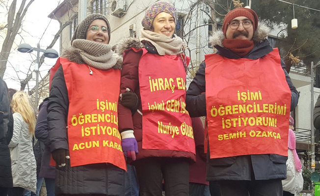 OHAL keyfiliği ile haksız, hukuksuz şekilde gerçekleşen ihraçlara karşı “İşimi geri istiyorum” eylemi gerçekleştiren üyelerimiz Nuriye Gülmen, Semih Özakça ve Acun Karadağ, eylemlerinin 121. Gününde bu kez de savcılık talimatıyla gözaltına alındı.