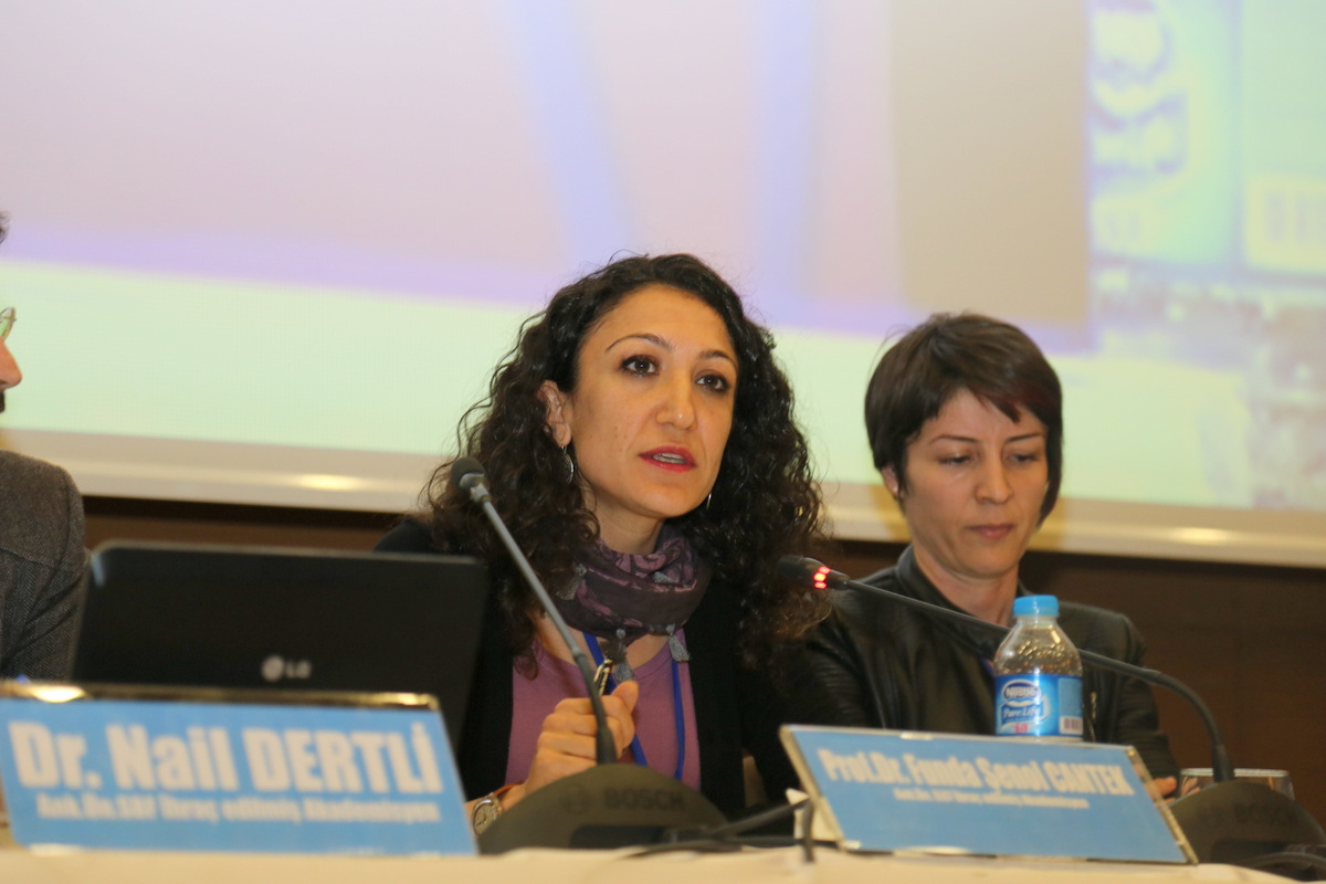 Ankara Üniversitesi’nden ihraç edilen Dr. Nail Dertli ise ihraçları ekonomik yönüyle değerlendirdi. İllerden gelen tebliğlerden de yararlandıklarını kaydeden Dertli, yerellerin ihraçları nasıl değerlendirdiğini de çalışmaya yansıttıklarını söyledi. İhraçların en temel birincil etkisinin gelir üzerine olduğunu belirten Dertli, ankete katılanların yüzde 63’ünün hanesinde başka gelir getirici bir bireyin bulunmadığını kaydetti. Ekonomik olarak bir başka etkinin borçlanmaya yönelik olduğunu belirten Dertli, ankete katılanların yüzde 31’inin uzun vadeli konut kredisi, yüzde 44’ünün tüketici kredisi olduğunu, sadece yüzde 15’inin hiçbir borcu bulunmadığını söyledi. Borçlarını ödeyemeyenlerin ellerinde bulunan varlıkları satmaya başladığını kaydeden Dertli, ihraç edilenlerin istihdama dahil olmalarının ise çok zor olduğunu söyledi. Dertli, ankete katılanların yüzde 84’ünün iş aradığını ve sadece yüzde 7’sinin iş bulabildiğini, onların da şoförlük, garsonluk, inşaat gibi kayıt dışı ve güvencesiz işler bulabildiğini söyledi. KESK dışında hiçbir sendikada dayanışmanın örülmediğinin gözlemlendiğini belirten Dertli, KESK’in hem hukuksal hem de maddi dayanışma içerisinde olduğunu söyledi.