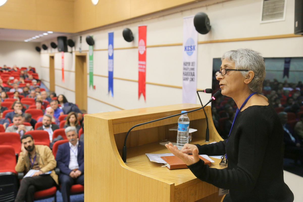 İhraçlar ve kamu emekçilerinin iş güvencesine ilişkin değerlendirmelerde bulunan Yrd. Doç. Dr. Özgür Müftüoğlu ise 657 sayılı Devlet Memurları Kanunun getirdiği iş güvencesinin baypas edilmesi için türlü yolların yıllardır denendiğini ve 15 Temmuz darbe girişiminin ise iş güvencesinin yok edilmesine yönelik fırsat olduğunu kaydetti. İhraçlarla KESK’in mücadele anlayışının sindirilmek istendiğini kaydeden Müftüoğlu, özellikle KESK’te yaşanan ihraçların ihraç edilenlerden daha çok toplumu etkilediğini söyledi. Uluslararası sendikalara da çağrı yapan Müftüoğlu, dayanışma ve raporlamalarının önemli olduğunu ancak yetmediği, uluslararası mücadeleyi birleştirecek bir mücadele anlayışına ihtiyaç olduğunu söyledi.