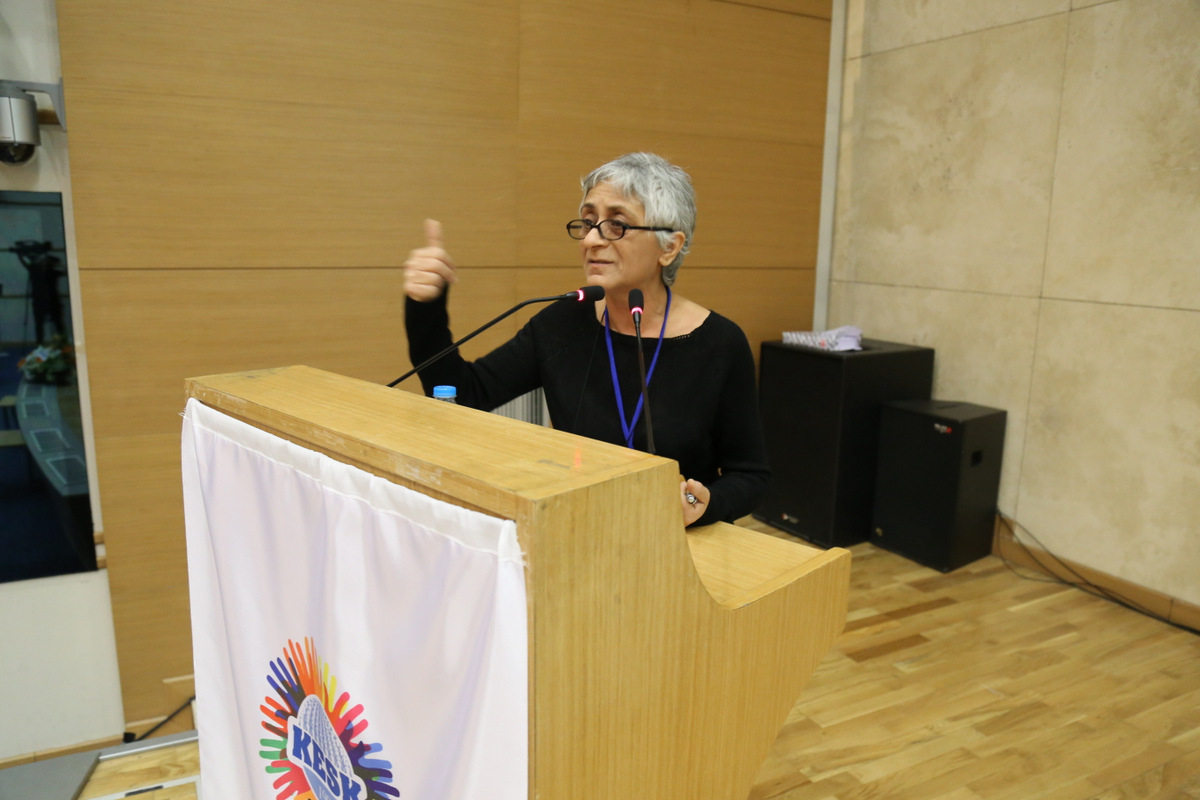 “Neden KESK hedef?” Siyasal iktidarın korporatist bir egemenlik kurmaya çalışmaya çalıştığına dikkat çeken Eş Genel Başkanımız Şaziye Köse, “KESK ve öncelleri, 60 yıllık toplumsal muhalefetin en önemli kurumlarıdır. Meydanlar bizimle özgürleşti, siyasal iktidar KESK’in bu tarihsel arka planını gören bir husumetle saldırıyor. KESK hala toplumsal muhalefetin en direngen örgütlülüğüdür. Siyasi iktidar bunu bir tehlike olarak görüyor ve bize bu yüzden saldırıyor, ancak yılmayacağız, diz çökmeyeceğiz, biat etmeyeceğiz, sendikal hak ve özgürlükler mücadelemizi sonuna kadar sürdüreceğiz.” dedi.