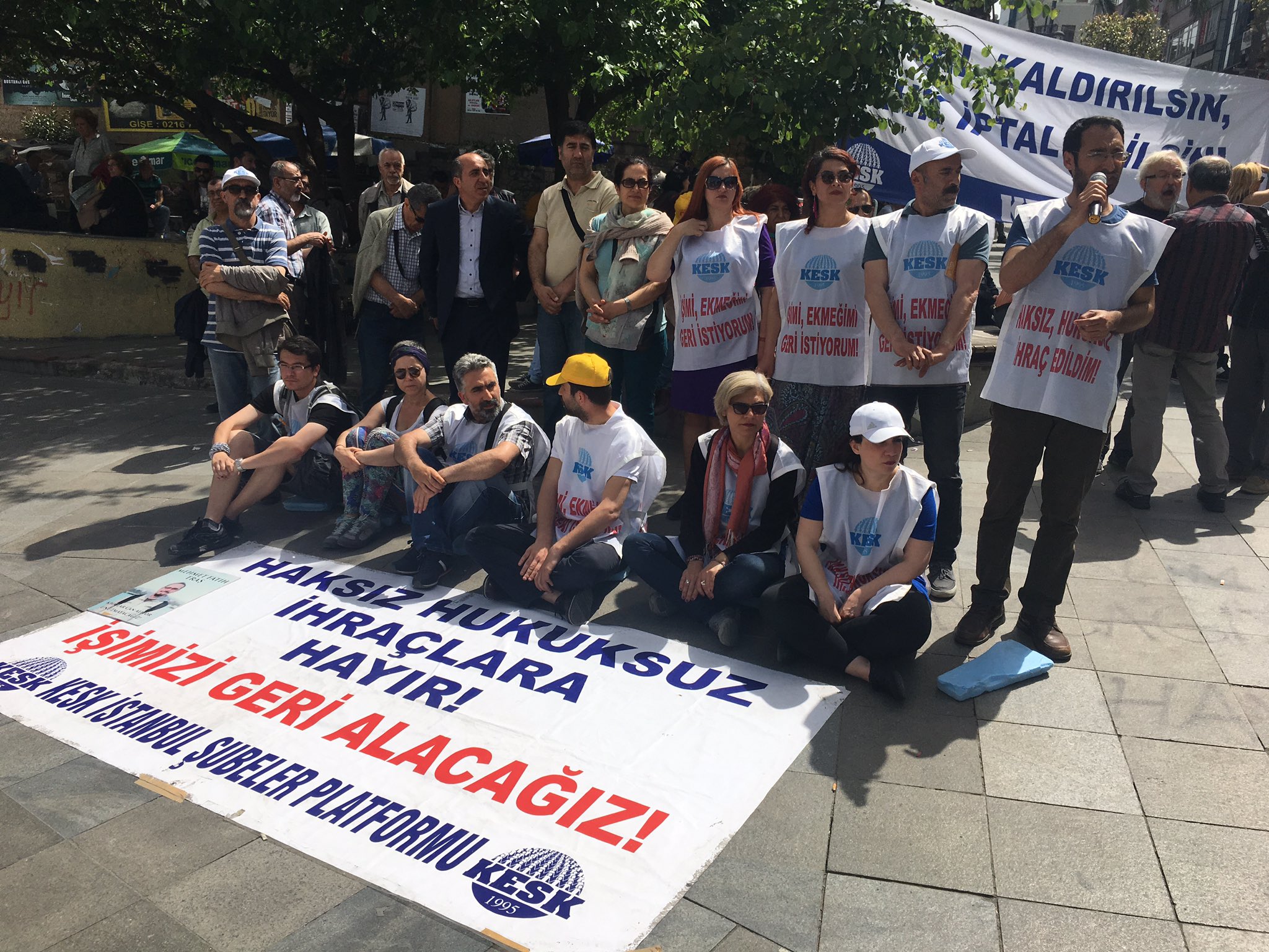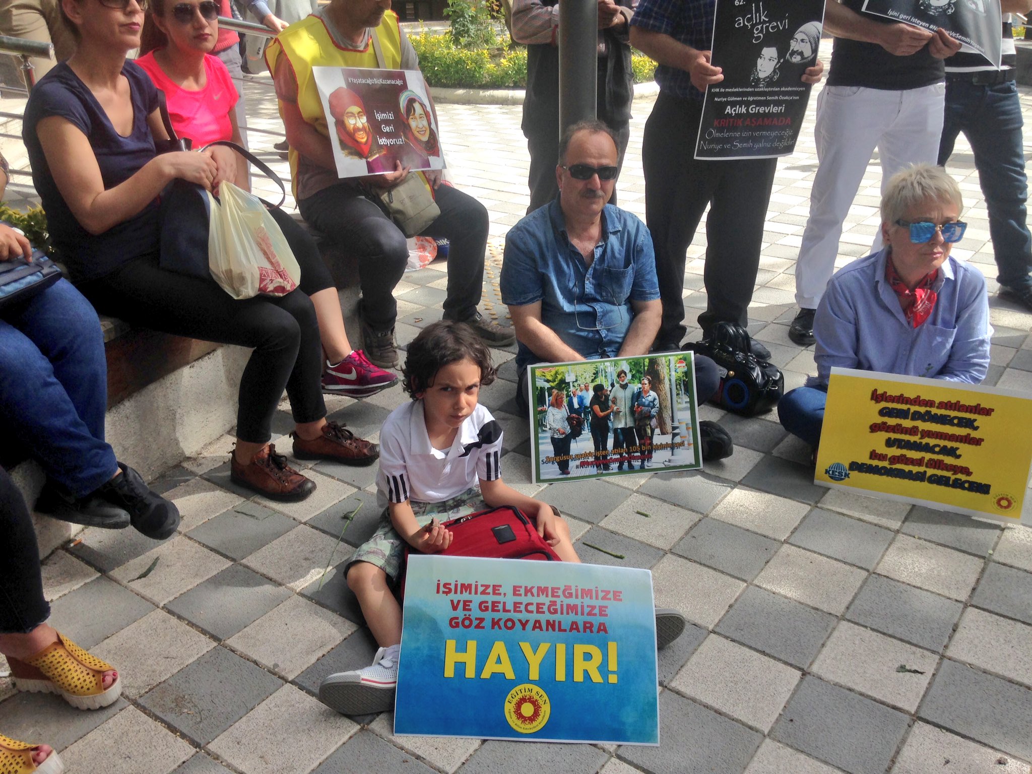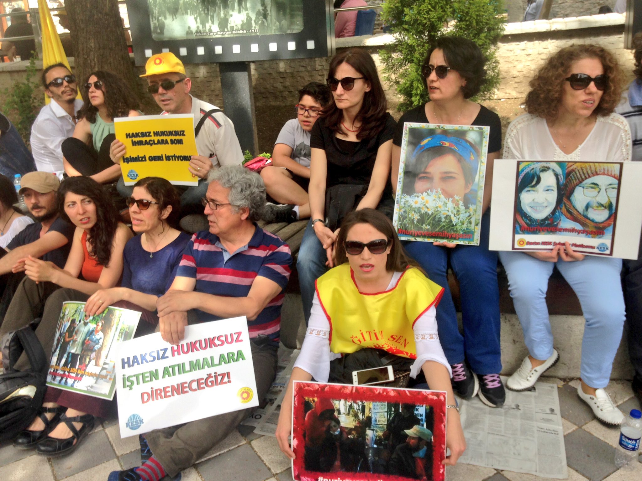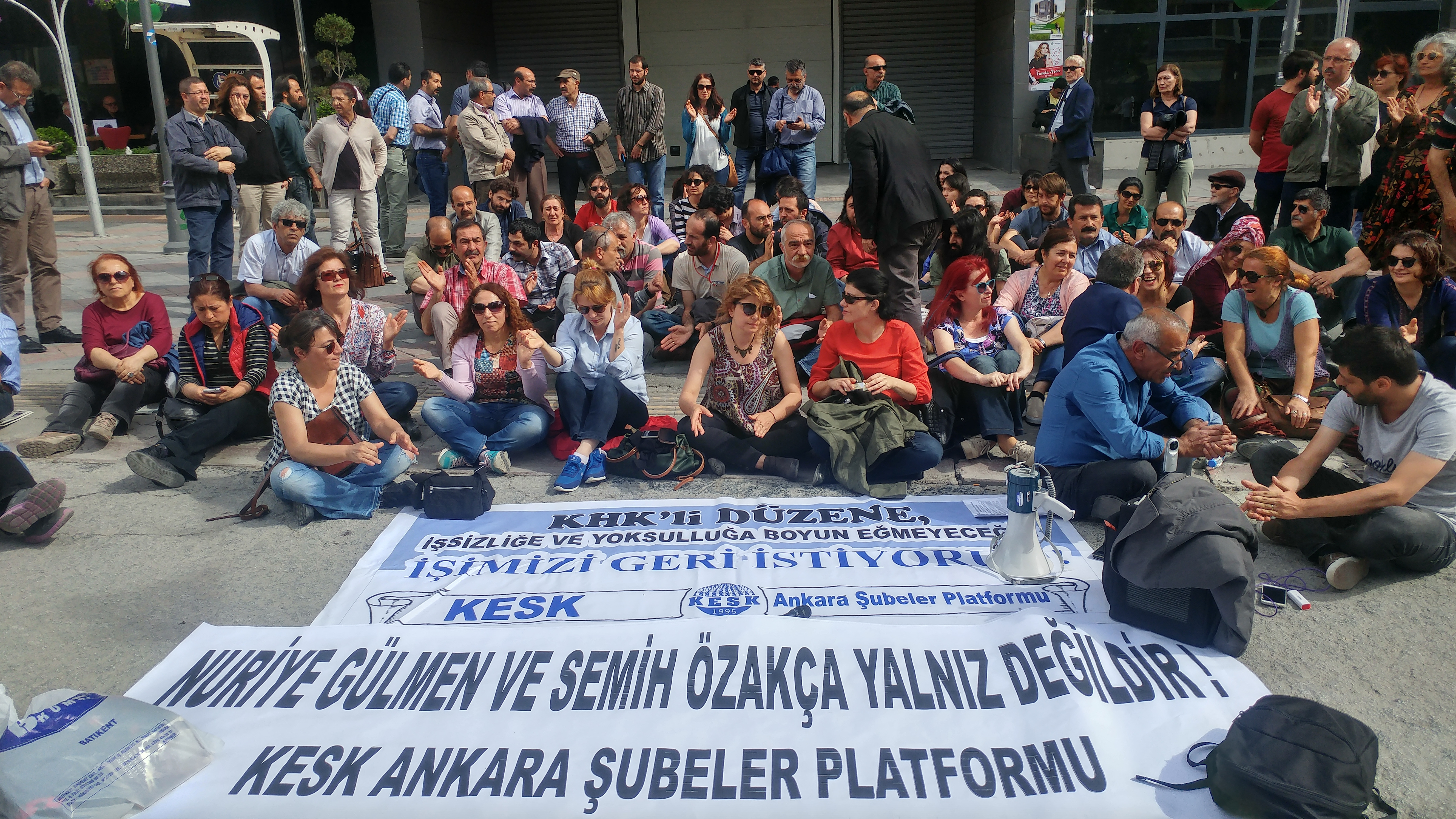 Geldiğimiz aşamanın ciddiyeti, hükümetin vurdumduymaz tavrının teşhiri ve hızla adımların atılması için ihraçlara yönelik oturma eylemlerimizde “Yaşatacağız, Biz Kazanacağız” şiarıyla özgür iradeleriyle gerçekleştirdikleri açlık grevinde kritik ve geri dönülemez bir noktaya doğru adım adım ilerleyen Nuriye Gülmen ve Semih Özakça ile “tüm kamu emekçileri işlerine iade edilsin” talebimiz alanlarda bir kez daha ifade edilmiştir.