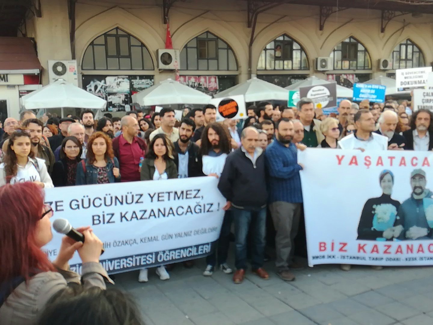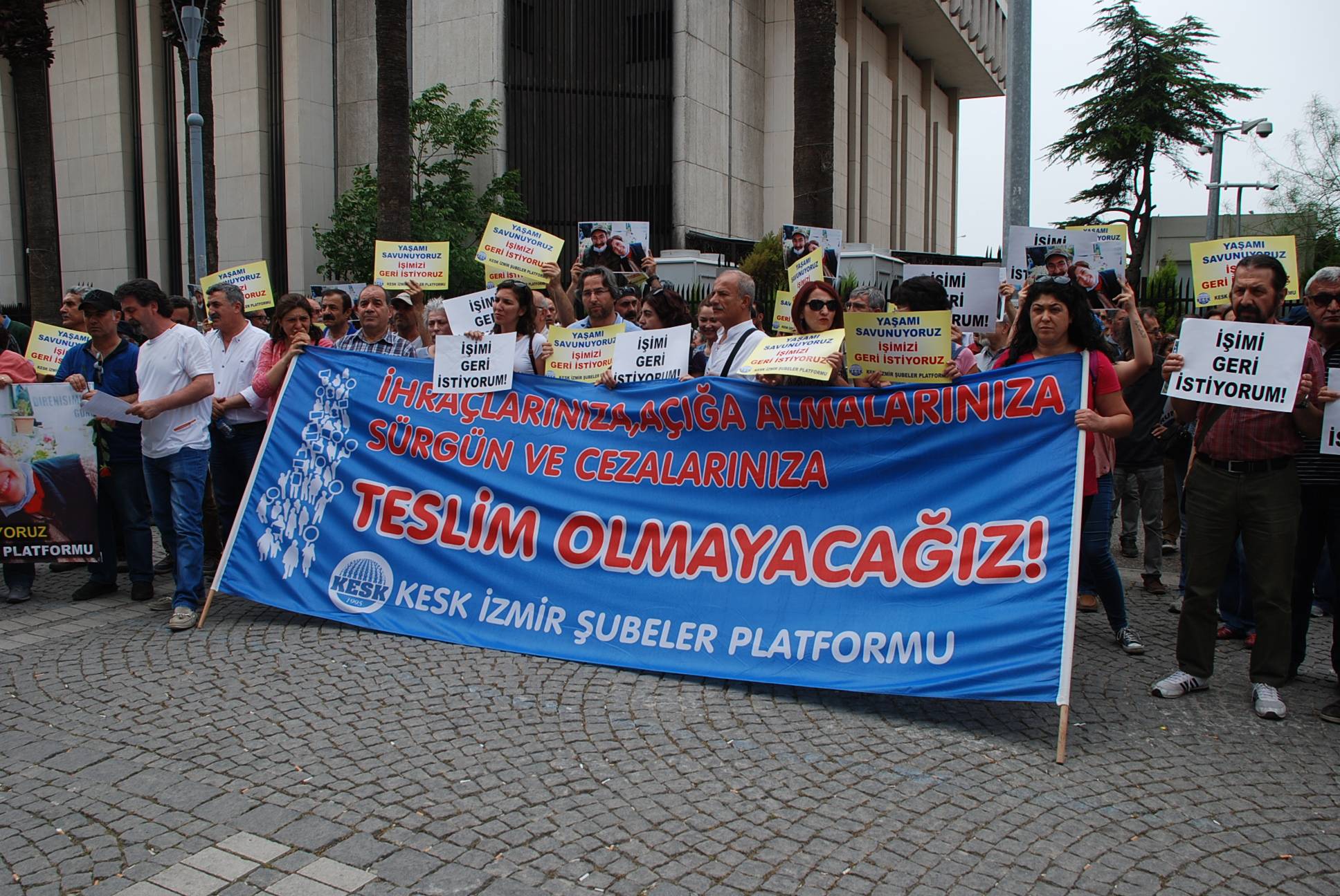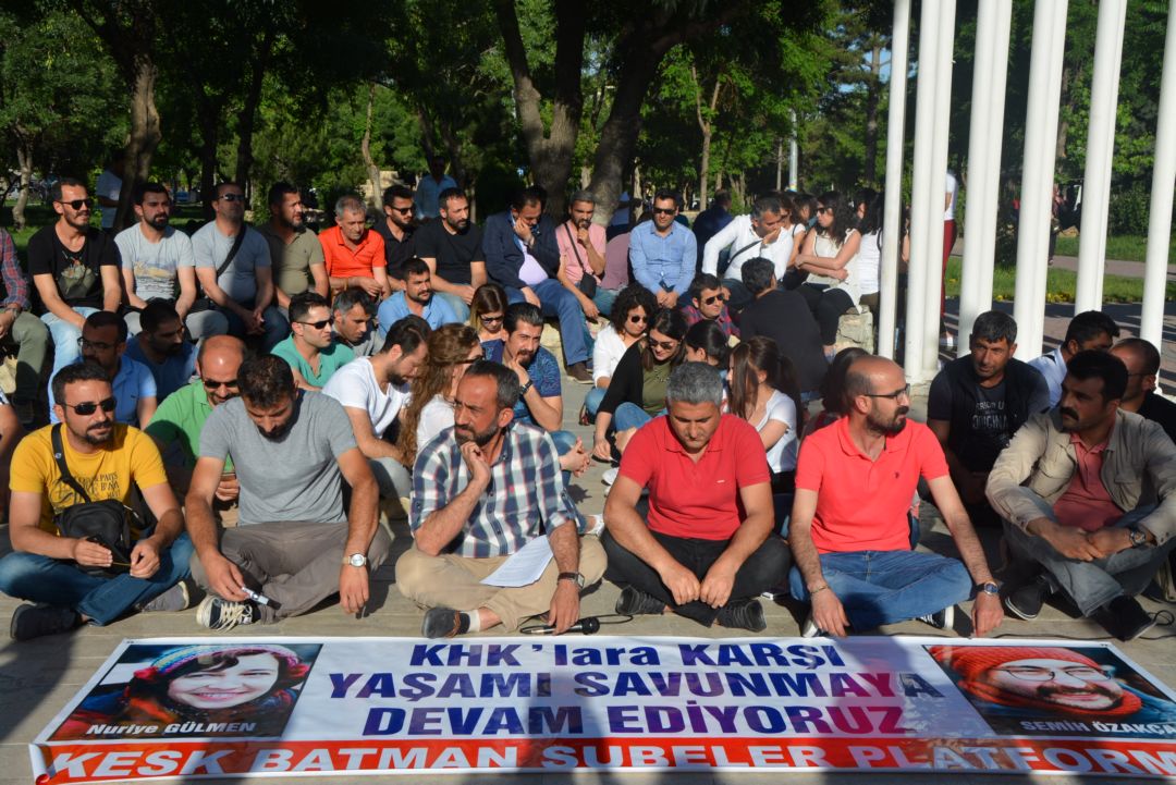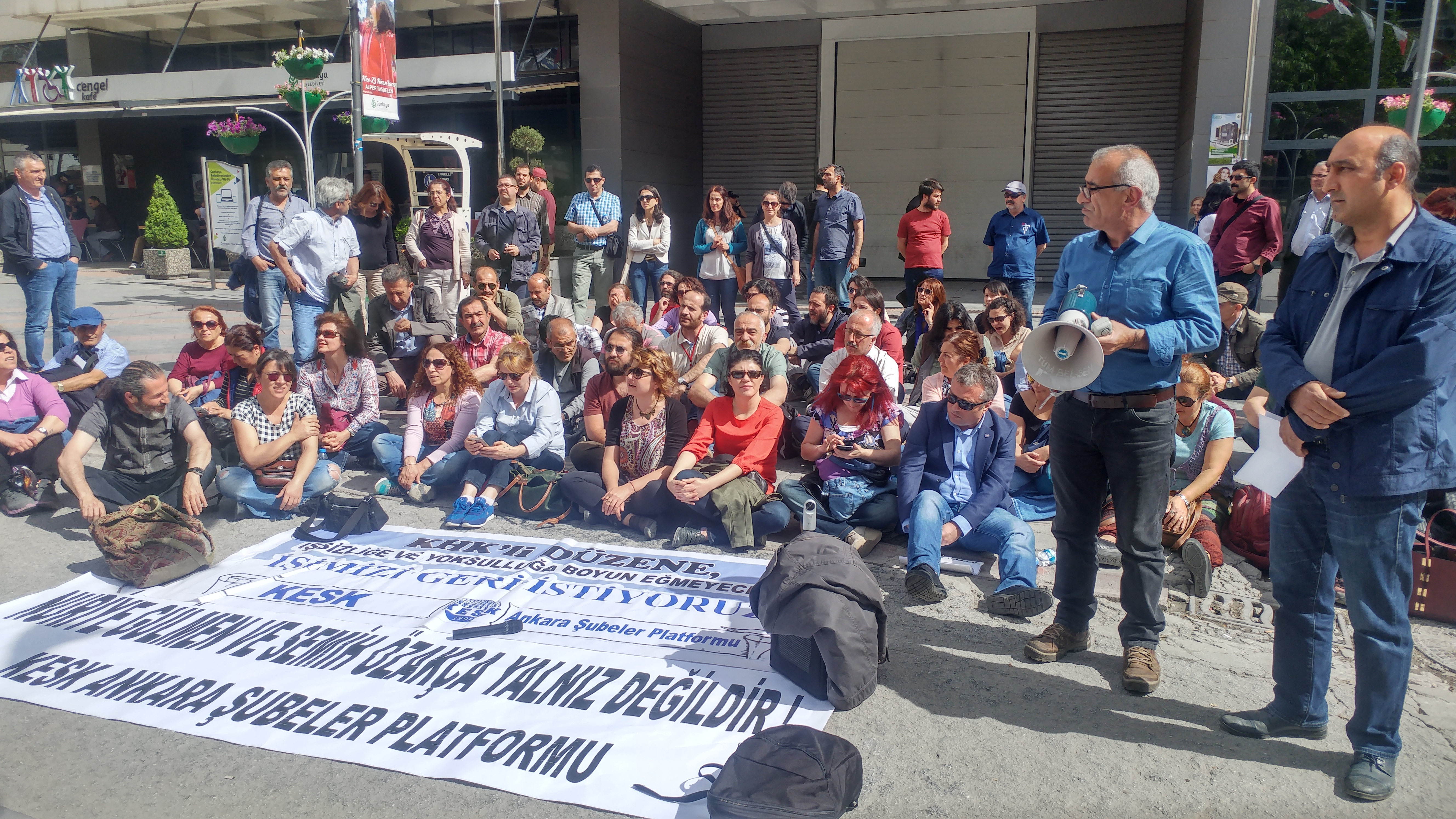 Geldiğimiz aşamanın ciddiyeti, hükümetin vurdumduymaz tavrının teşhiri ve hızla adımların atılması için ihraçlara yönelik oturma eylemlerimizde “Yaşatacağız, Biz Kazanacağız” şiarıyla özgür iradeleriyle gerçekleştirdikleri açlık grevinde kritik ve geri dönülemez bir noktaya doğru adım adım ilerleyen Nuriye Gülmen ve Semih Özakça ile “tüm kamu emekçileri işlerine iade edilsin” talebimiz alanlarda bir kez daha ifade edilmiştir.