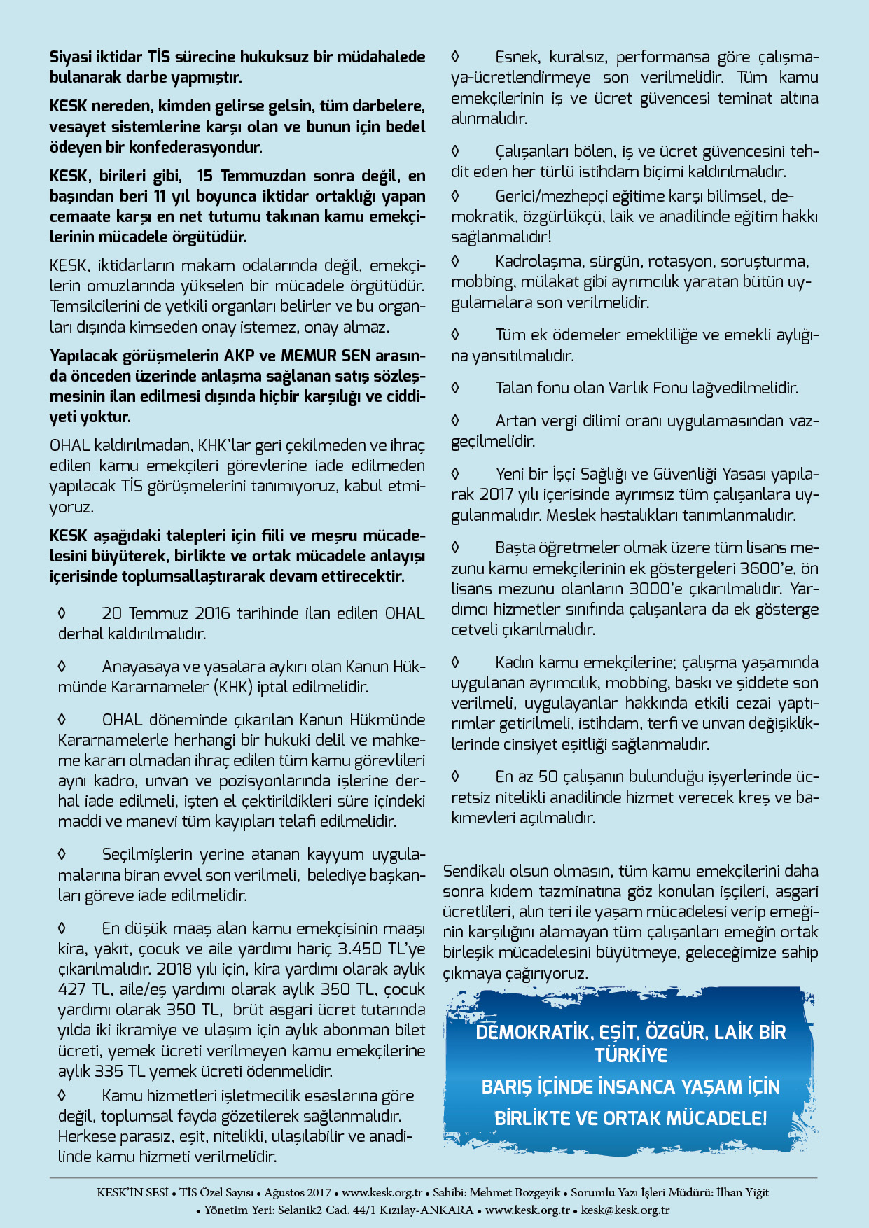 4 Ağustos 2017 TİS - Halk Bildirisi TİS - Halk Bildirisi # AFİŞ VE GÖRSELLER # BROŞÜR VE BİLDİRİLER # DUYURU # EMEK VE DEMOKRASİ HABERLERİ # KESK\'İN SESİ