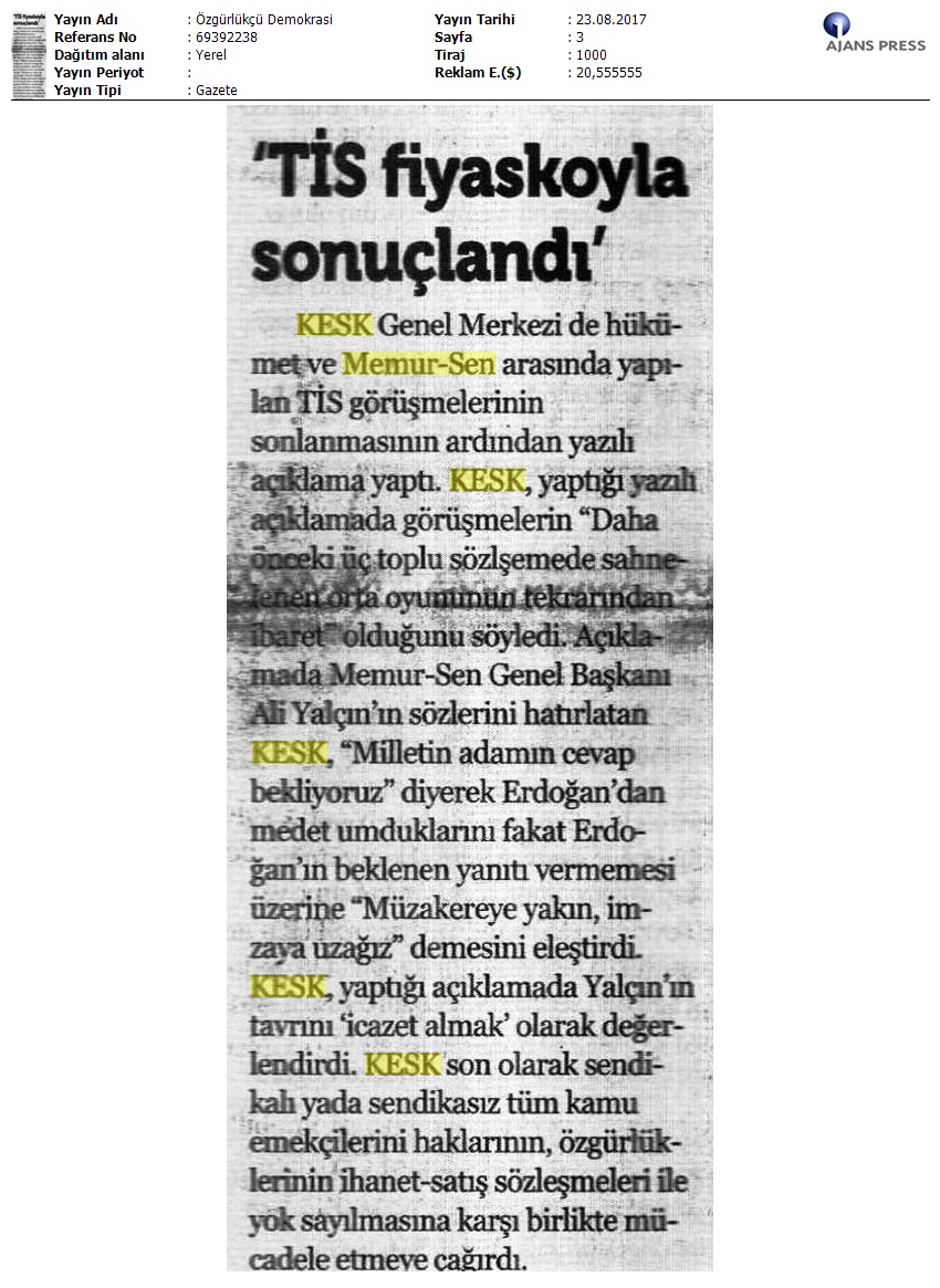 23 Ağustos Basından Derlediklerimiz