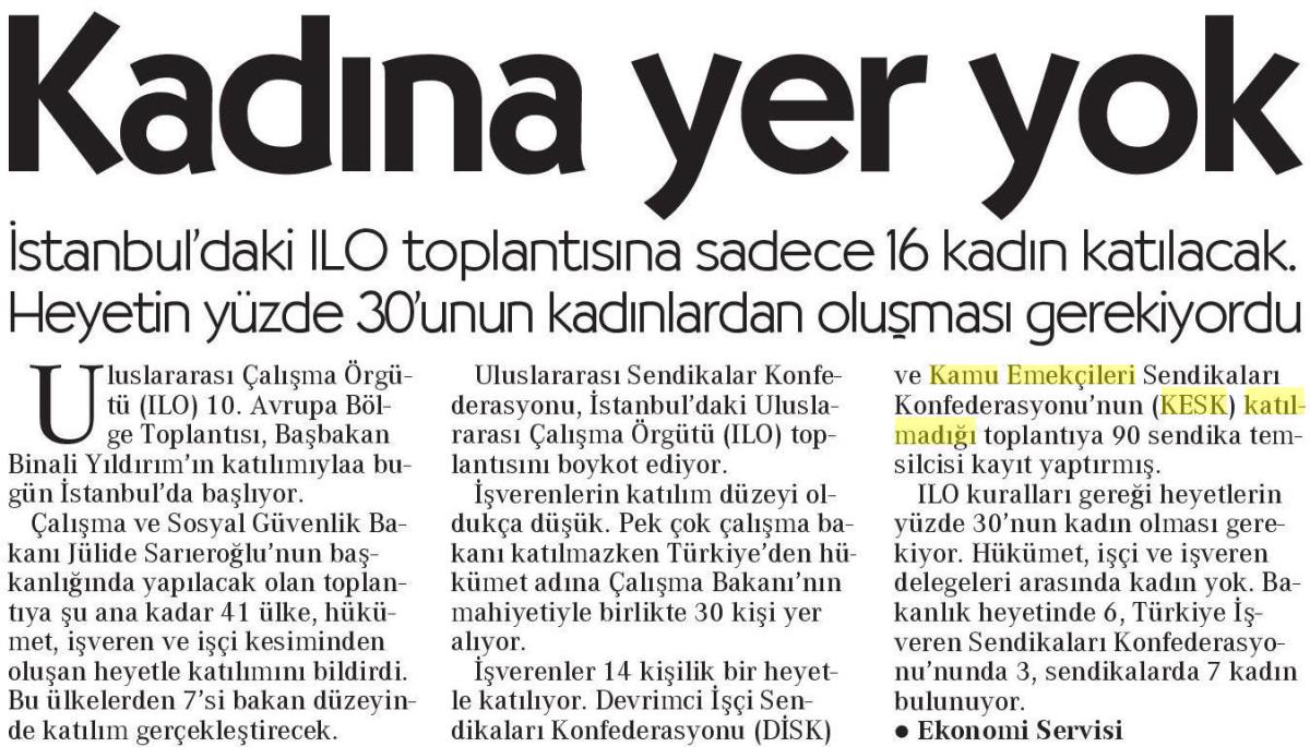 Konfederasyonumuzun; AKP Hükümetinin darbe uygulamalarını aratmayan politikalarında ısrar etmesi, ILO ve diğer uluslararası sözleşmeleri ihlal etmesi, mevcut anayasamızı bile ayaklar altına alarak ülkeyi, çalışma yaşamını OHAL/KHK rejimiyle yönetmesi gibi nedenlerden dolayı katılmadığı 10. ILO Avrupa Bölge Toplantısı 5…