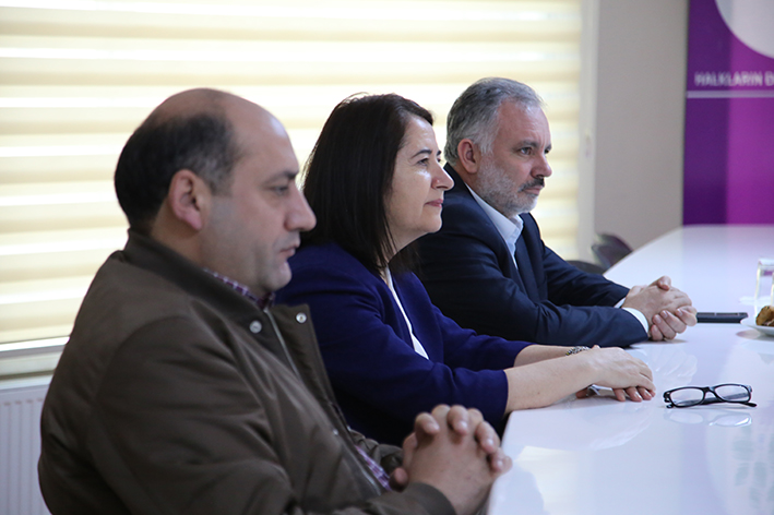 Bugün (17 Kasım 2017) OHAL düzeninin son bulması ve demokrasi mücadelesi konusunda görüş alışverişinde bulunmak üzere Kamu Emekçileri Sendikaları Konfederasyonu (KESK) Eşbaşkanı Mehmet Bozgureyik, Devrimci İşçi Sendikaları Konfederasyonu (DİSK) Genel Başkanı Kani Beko, Türk Tabipleri Birliği (TTB) Başkanı Raşit Tükel, Türkiye Mimar ve Mühendis Odaları Birliği (TMMOB) 2. Başkanı Züber Akgöl’den oluşan heyet HDP Genel Merkezi’ni ziyaret ederek, HDP Eş Genel Başkanı Serpil Kemalbay, Parti Sözcüsü Ayhan Bilgen, Eş Genel Başkan Yardımcısı Nadir Yıldırım ile görüştüler.