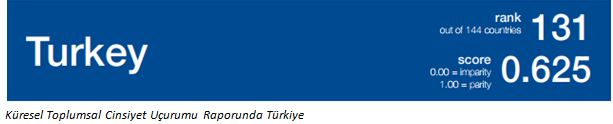 Türkiye, toplumsal cinsiyet eşitsizliğinin en derin yaşandığı; eğitim, sağlık, istihdam, siyasal katılma ve şiddet gibi temel başlıklarda kadınlara yönelik sistematik ayrımcılığın devam ettiği bir ülkedir. 2017 yılı Küresel Toplumsal Cinsiyet Uçurumu Raporu’na göre Türkiye 144 ülkenin içerisinde 131. sırada yer almaktadır.