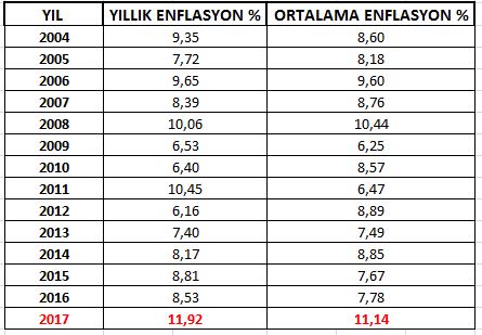 2017 YILLIK ENFLASYONU: %11,94