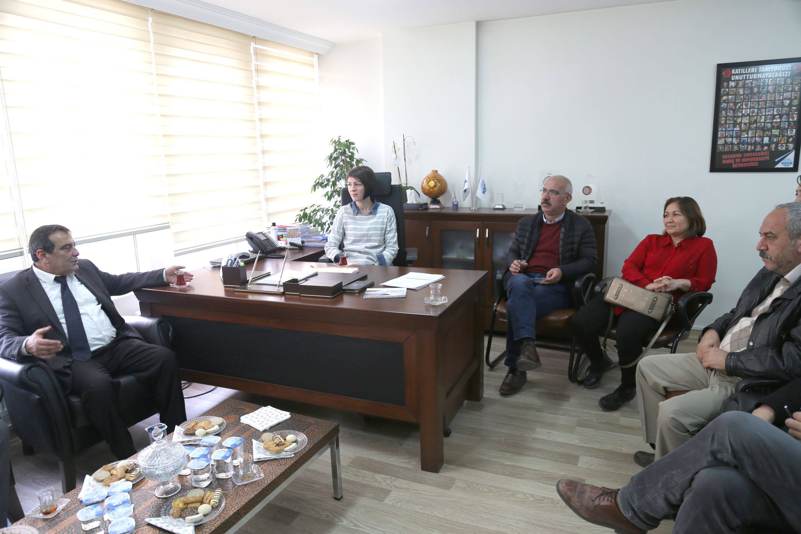 Ziyarette; TMMOB Yönetim Kurulu Başkanı Emin Koramaz, II. Başkan Züber Akgöl, Yürütme Kurulu Üyesi Kemal Zeki Taydaş, Genel Sekreter Yardımcısı Gülsüm Sönmez, TMMOB Ankara İKK Sekreteri Özgür Topçu, Odalardan; Hüseyin Önder (EMO), Ayhan Yüksel (MADENMO), Yunus Yener (MMO), Arife Kurtoğlu (MMO), Satılmış Göktaş (MMO), İsmail Odabaşı (MMO) ve Ahmet İrfan Türkkolu (METMALZMO)’dan oluşan TMMOB Heyeti Konfederasonumuz Eş Genel Başkanı Aysun Gezen, Genel Sekreter Ramazan Gürbüz, Eğitim, Örgütlenme ve Basın Yayın Sekreteri İlhan Yiğit, Kadın Sekreteri Gülistan Atasoy Tekdemir ve Hukuk, TİS ve Uluslararası İlişkiler Sekreteri Yusuf Şenol ile görüştü.