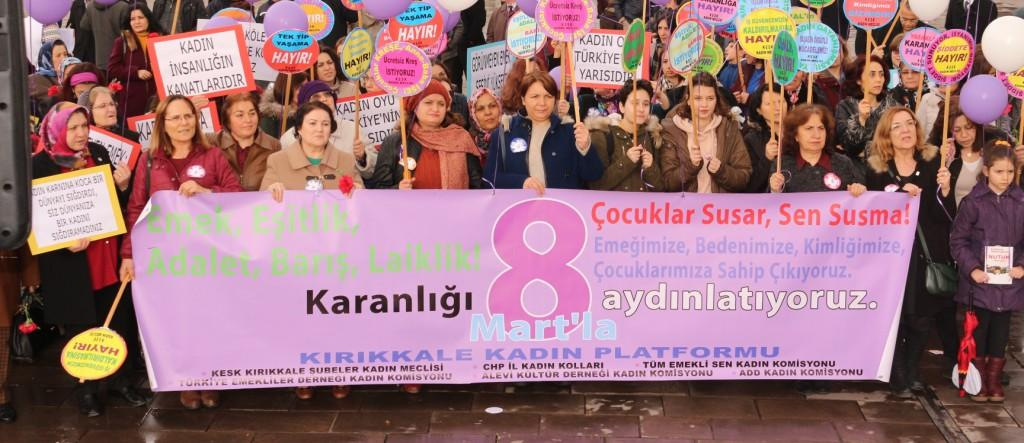 “8 Mart politik mesajlar verdiğimiz uluslararası ve devrimci bir gündür. Bu 8 Martta dünyanın bütün kadınlarını şiddete “Artık Yeter” diye haykırmak feminist greve davet eden çağrıyı destekliyoruz. Hep birlikte bize yönelen her tür için bütün kadınları bir günlüğüne dünyayı durdurmaya çağırıyoruz çünkü bu dünyayı biz döndürüyoruz. Yaşamı yeniden üreten, yaşamın devamını mümkün kılan bizler, işyerinde ücret ayırımcılığının yanı sıra cinsel taciz ve aşağılamaya, iş piyasasında güvencesizliğe maruz kalan bizler, hayatımızı, bedenimizi ve sağlığımızı metalaştıran tüketim ideolojisine dur demek için bugün üretimden ve tüketimden gelen gücümüzü kullanıyor ve dünyanın farklı köşelerinden yükselen kadın grevi çağrısına kadın dayanışmasıyla omuz veriyoruz. Toplumsal cinsiyet kimliklerimizi inşa ederek bizleri toplumda ikincil rollere hapseden eğitim kurumlarını bugün boykot ederek kamusal, bilimsel, laik ve feminist eğitim hakkı talep ediyoruz.