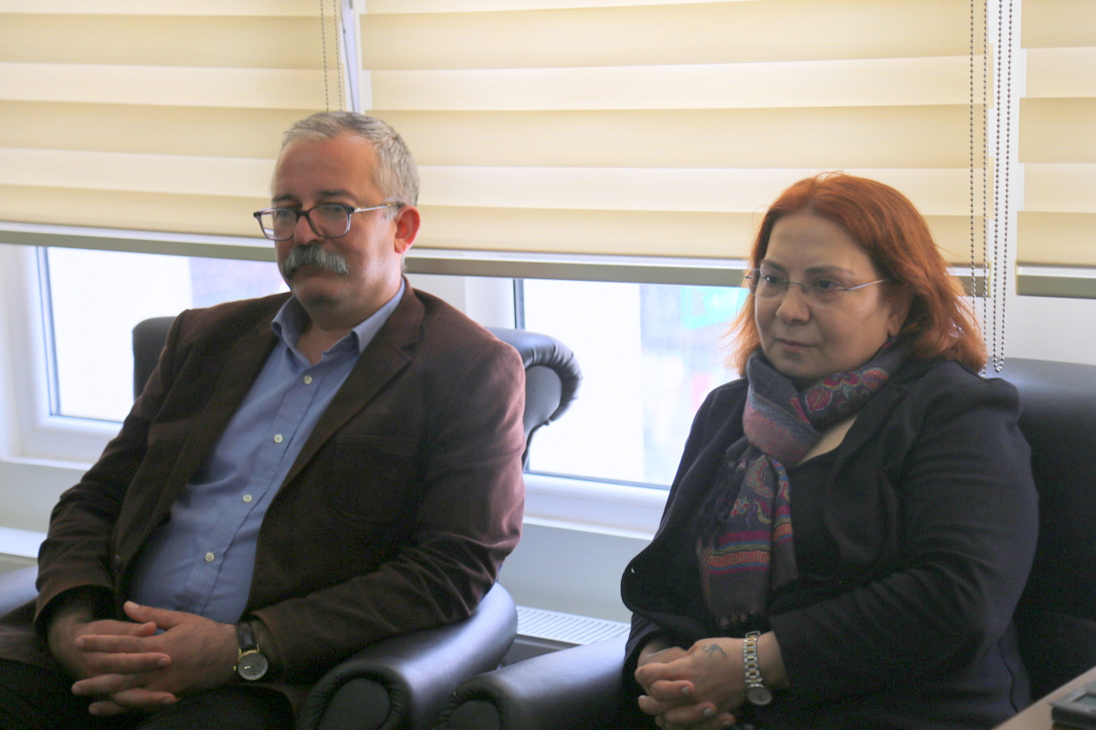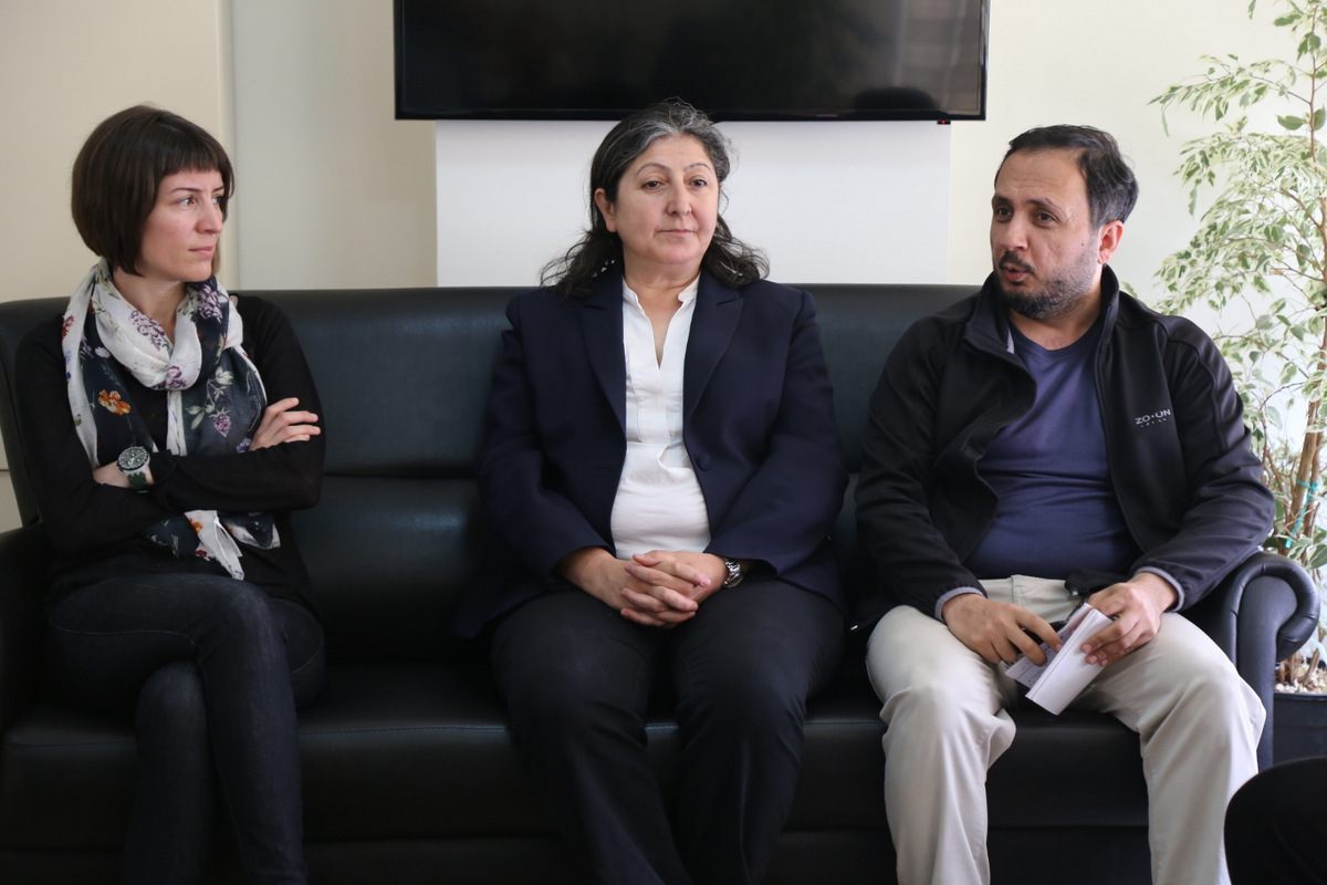 Siyasal ve sendikal gelişmeler gündemiyle gerçekleşen ziyarette HDP heyetini, Eş Genel Başkanlarımız Mehmet Bozgeyik ve Aysun Gezen, Genel Sekreterimiz Ramazan Gürbüz, Eğitim-Örgütlenme ve Basın-Yayın Sekreterimiz İlhan Yiğit ile Mali Sekreterimiz Elif Çuhadar karşıladı.