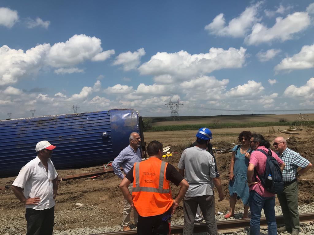 Konfederasyonumuz Eş Genel Başkanı Mehmet Bozgeyik, Genel Sekreterimiz Ramazan Gürbüz, üye sendikamız Birleşik Taşımacılık Sendikası Genel Başkanı Hasan Bektaş, Büro Emekçileri Sendikası Genel Sekreteri Aziz Özkan ile İstanbul Şubeler Platformu üyelerimizden oluşan heyetimiz bugün 12.00’dan itibaren Tekirdağ Çorlu’da tren faciasının yaşandığı yerde inceleme gerçekleştirdiler.