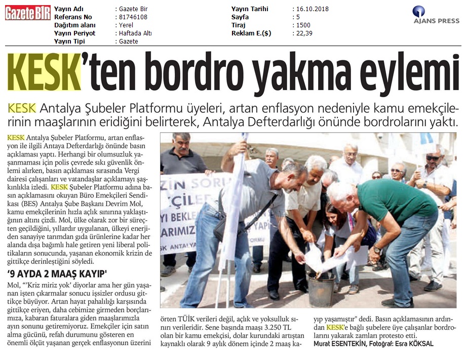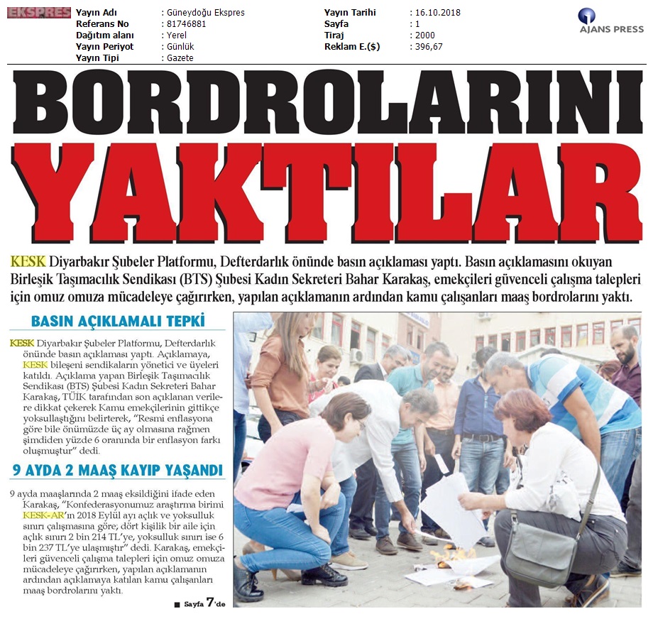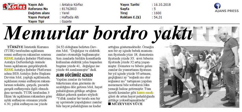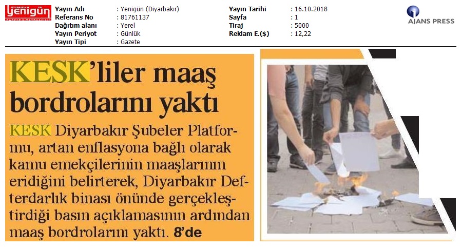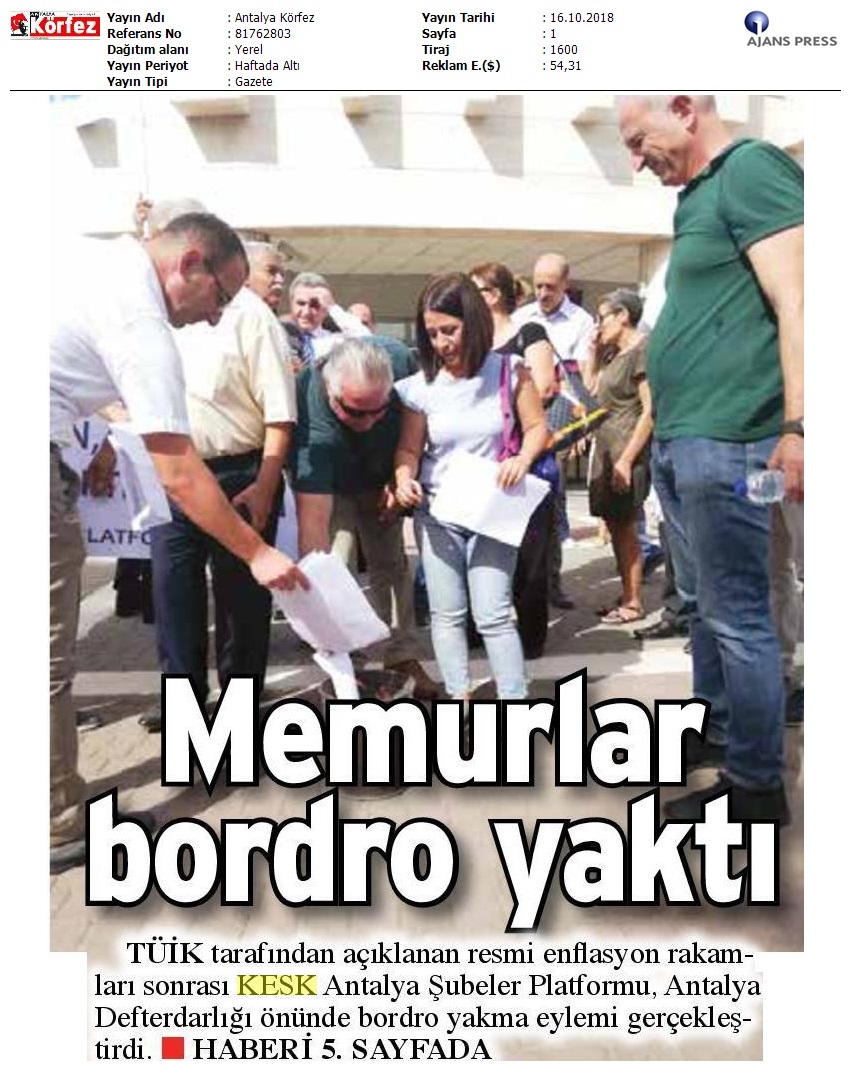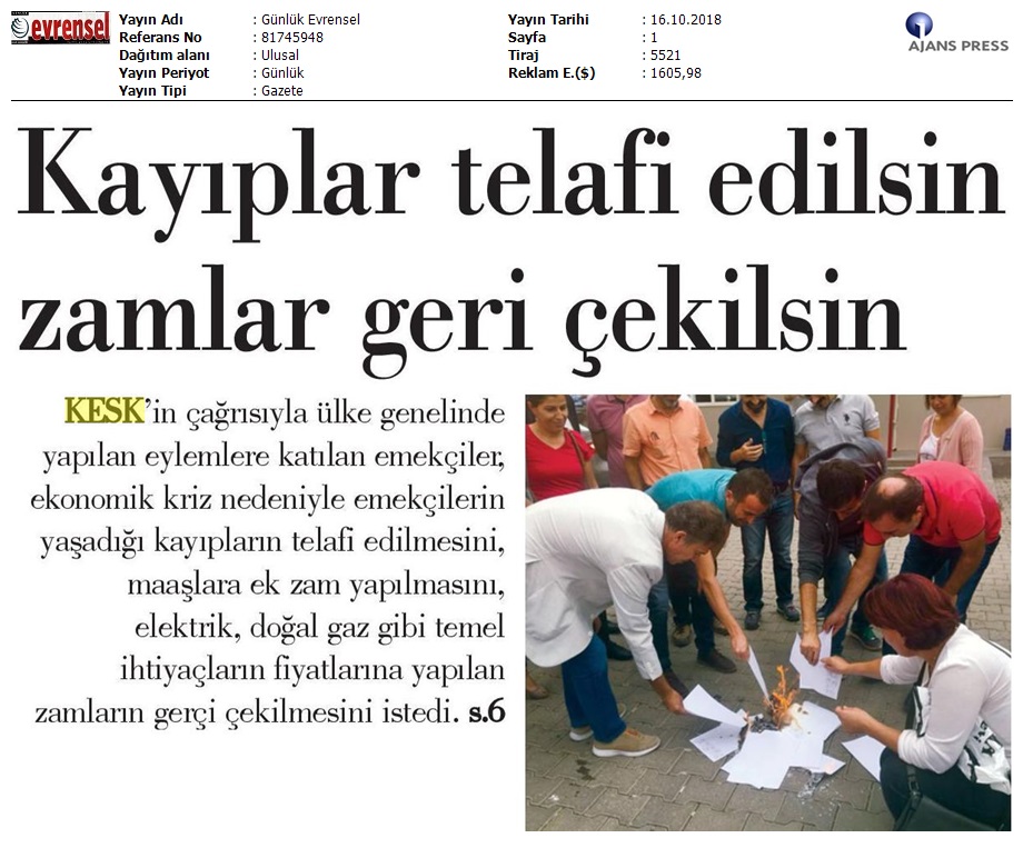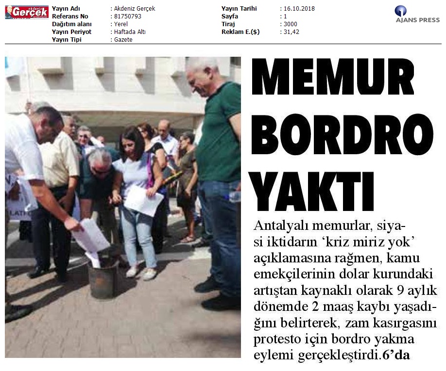 Maaşlarımıza Ek Artış İstiyoruz! Bordrolarımızı Yaktık!