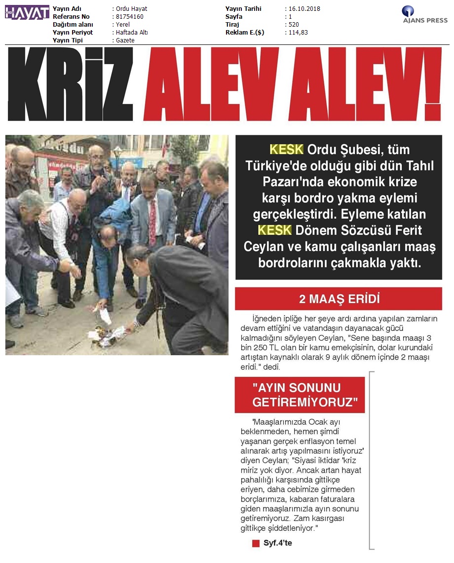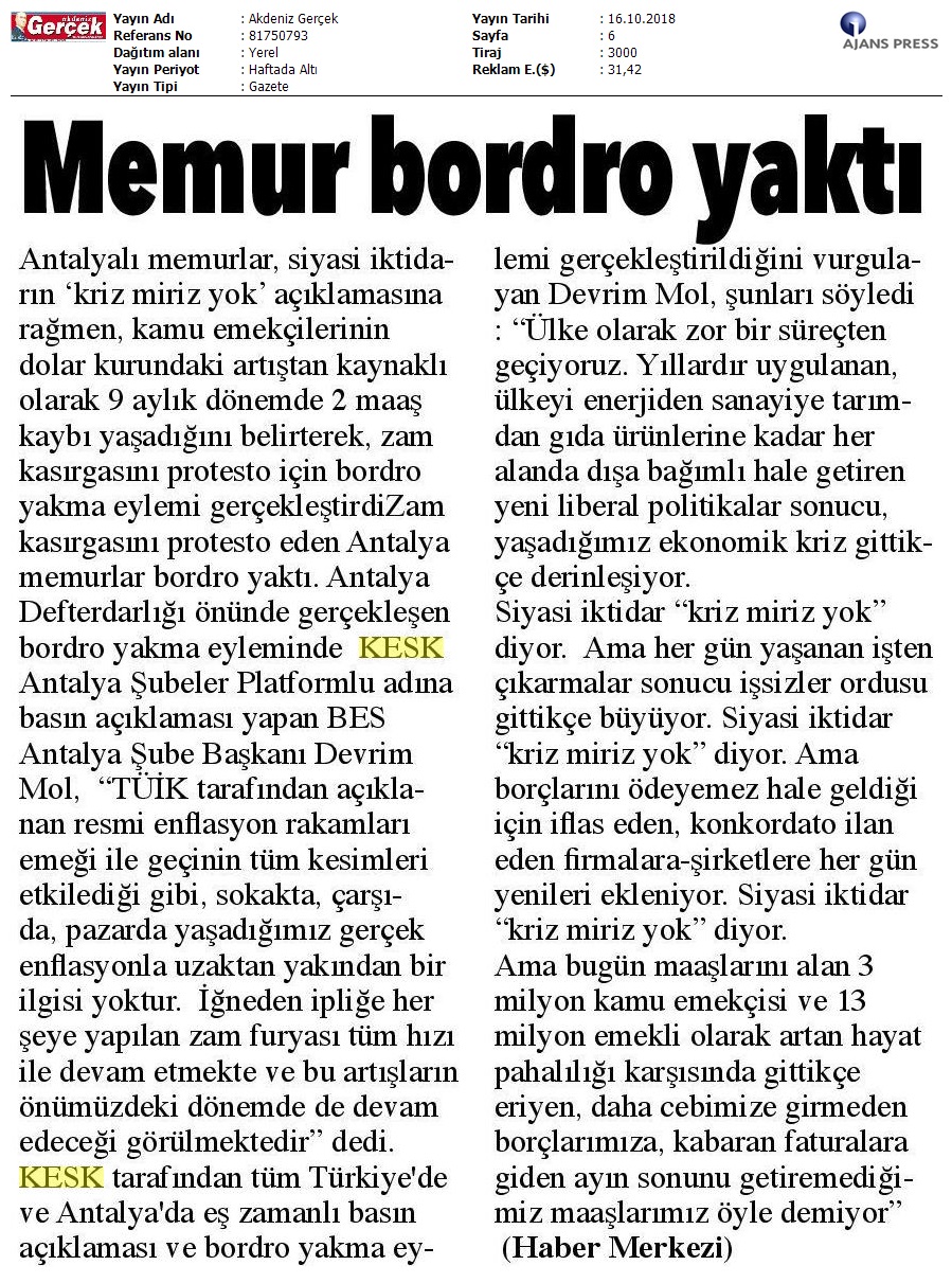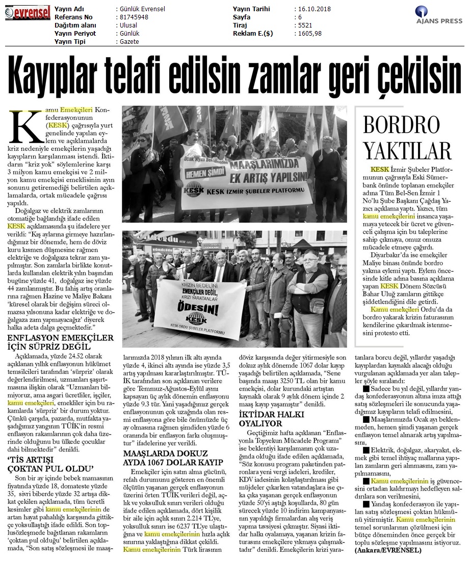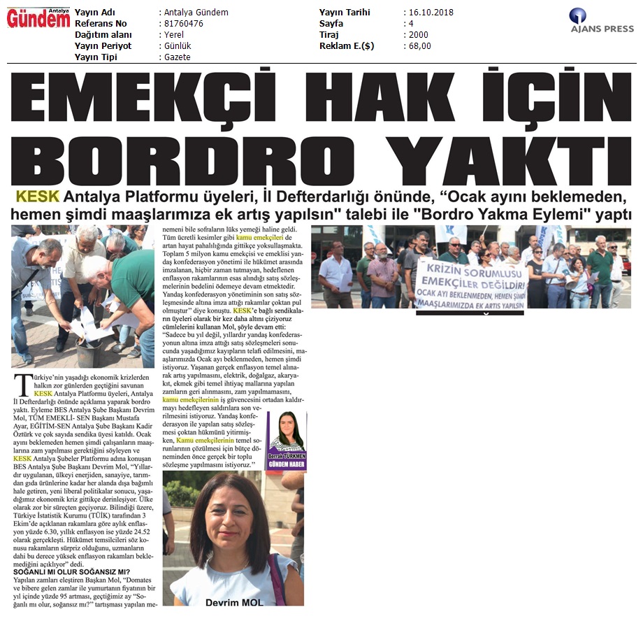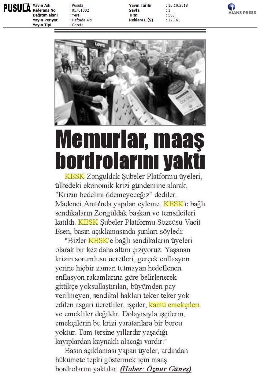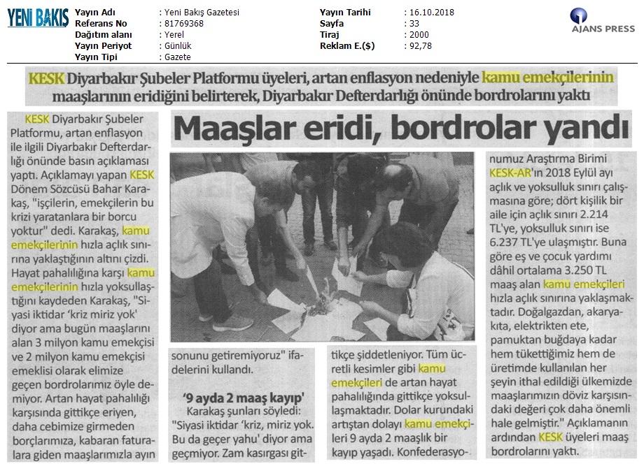 Maaşlarımıza Ek Artış İstiyoruz! Bordrolarımızı Yaktık!