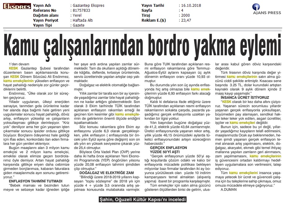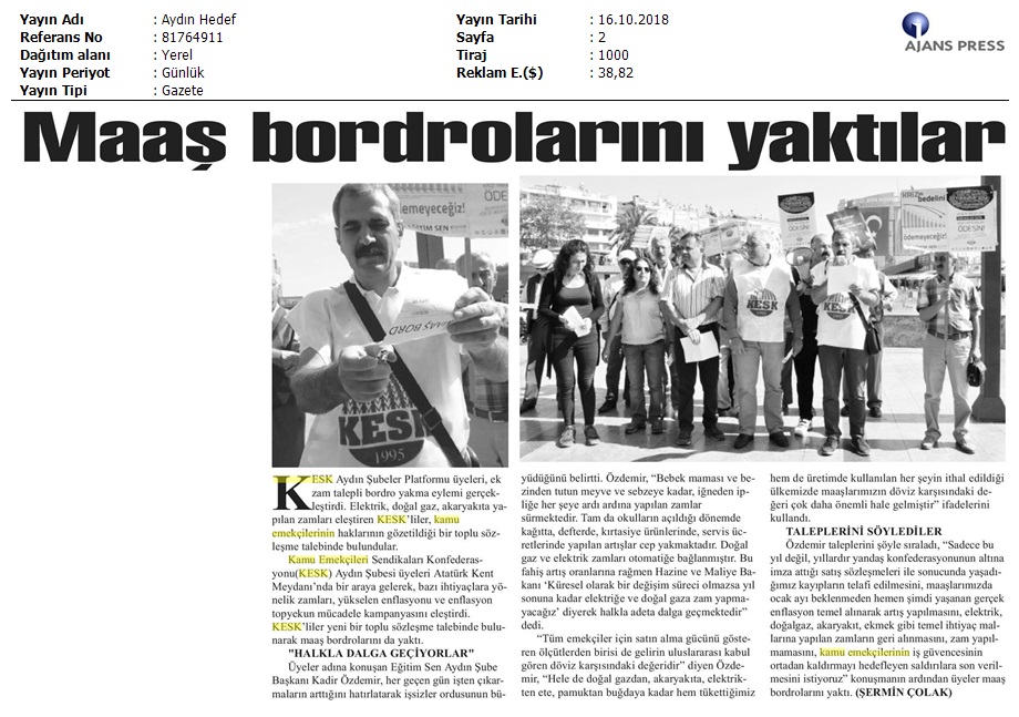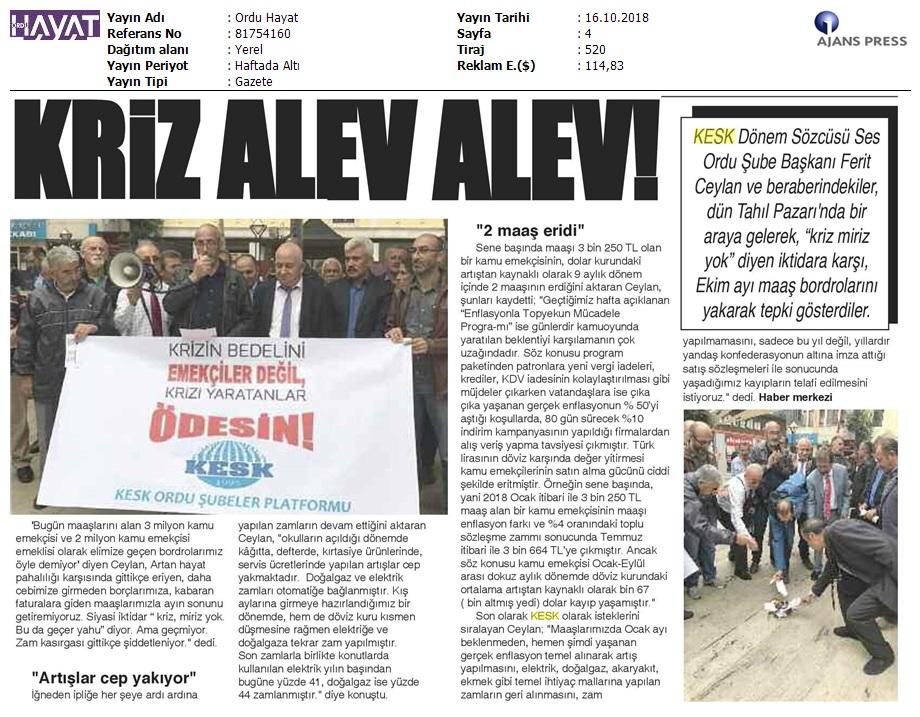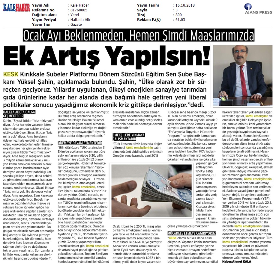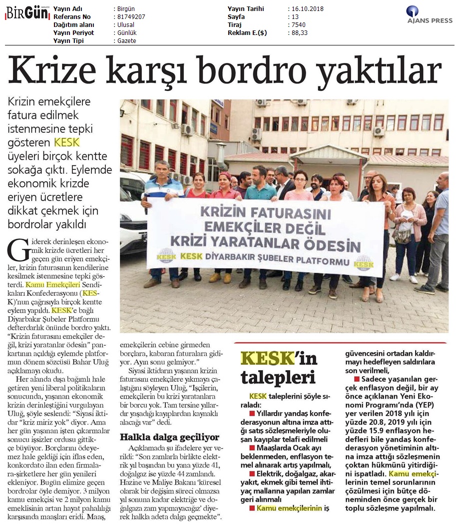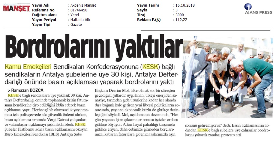 Maaşlarımıza Ek Artış İstiyoruz! Bordrolarımızı Yaktık!