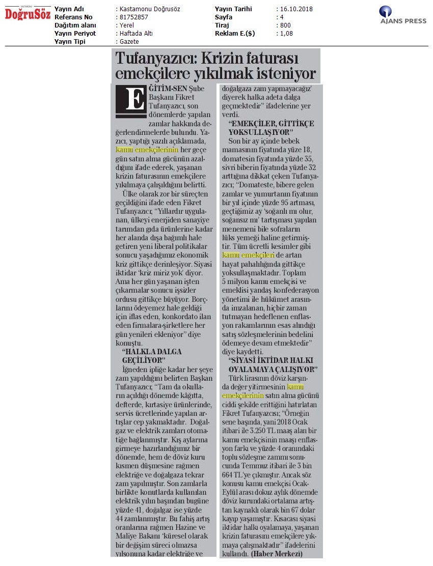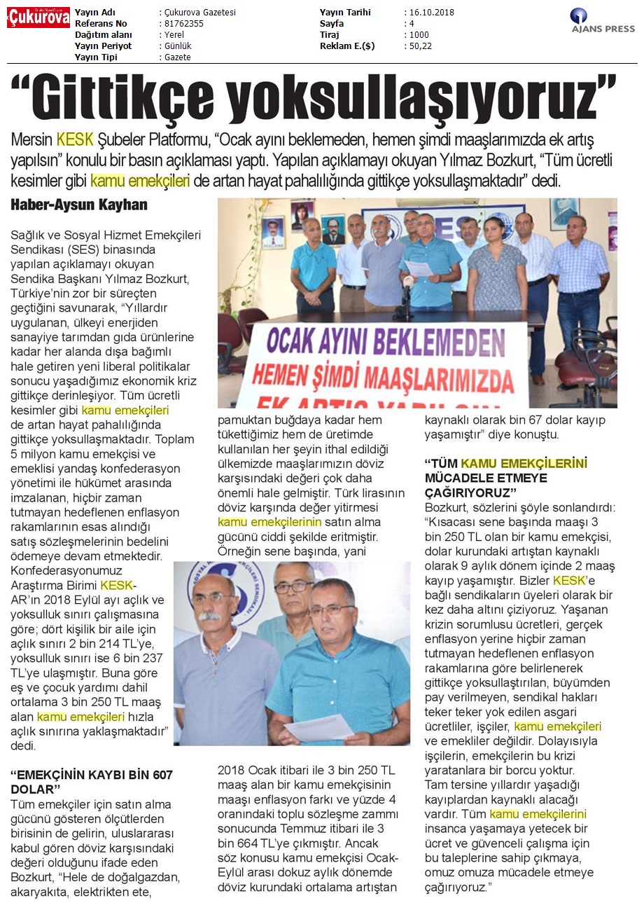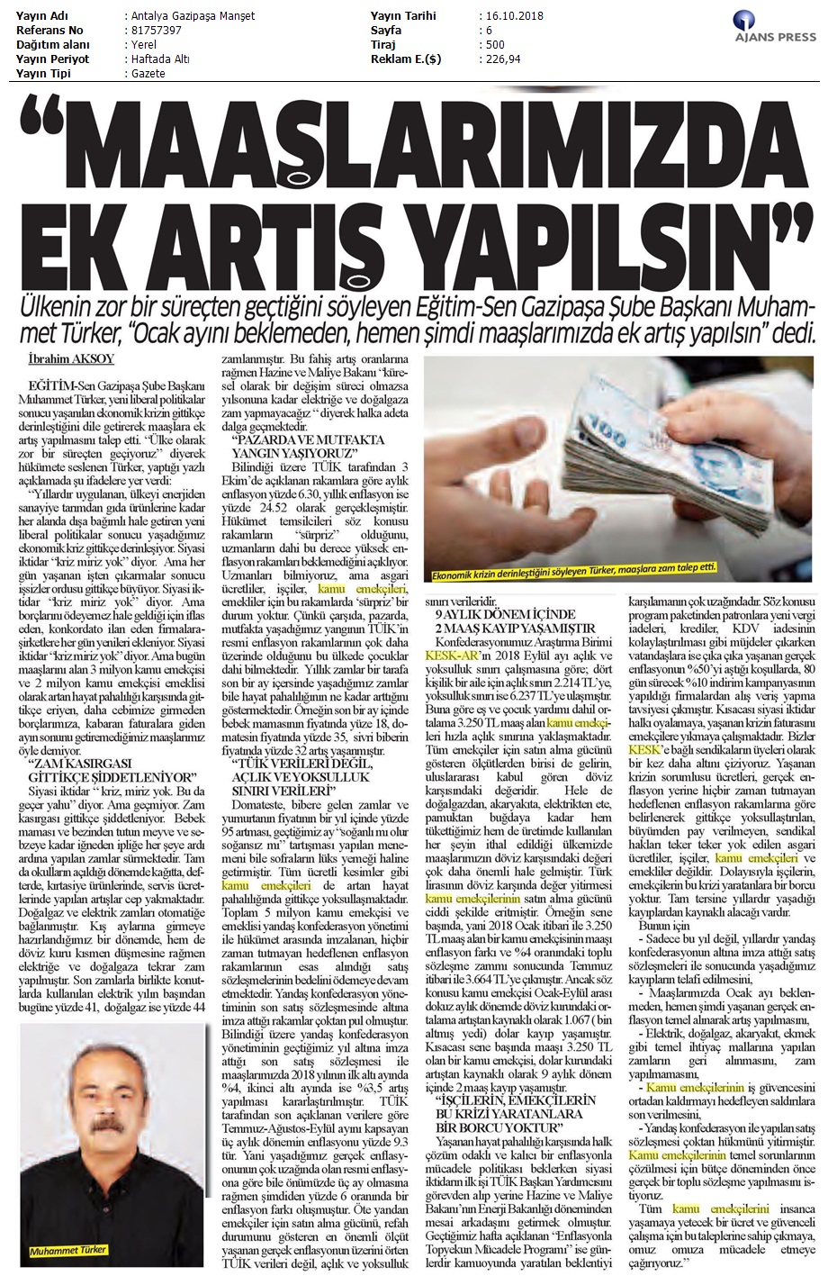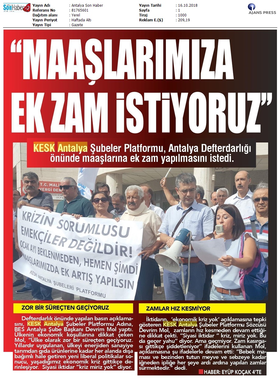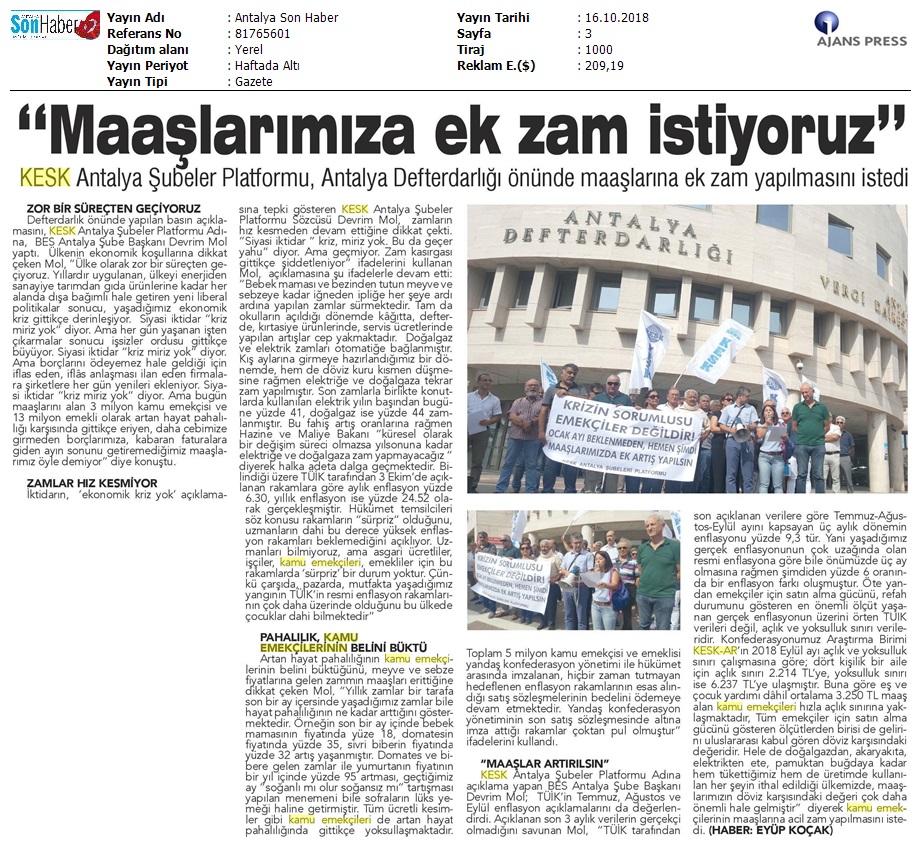 Maaşlarımıza Ek Artış İstiyoruz! Bordrolarımızı Yaktık!
