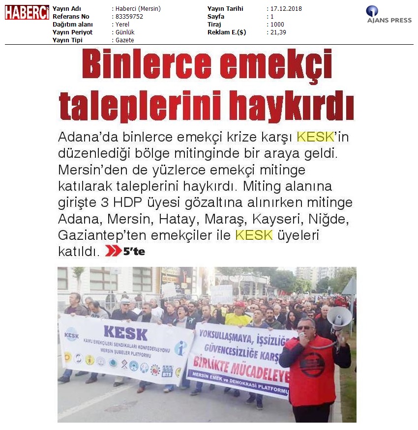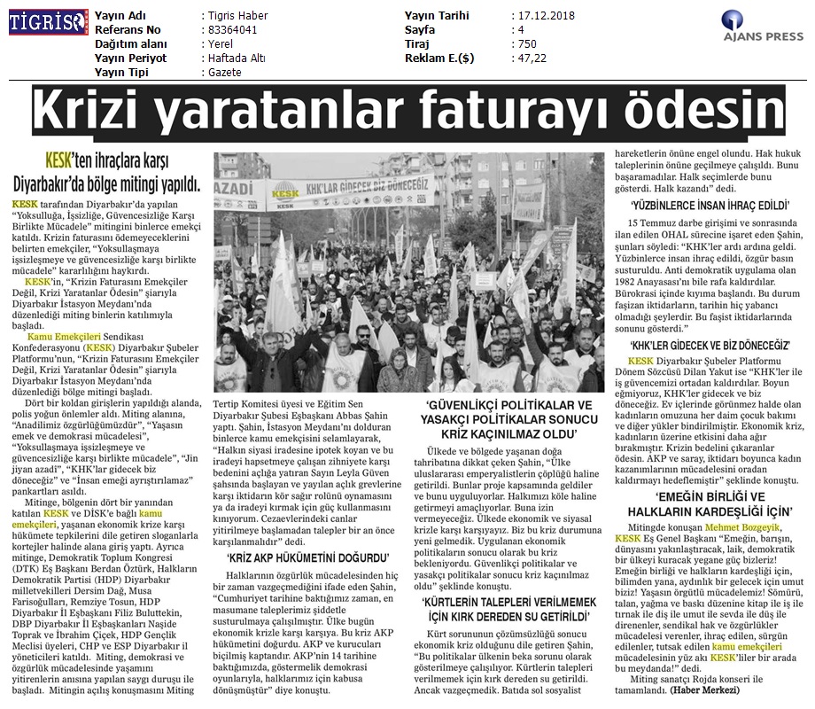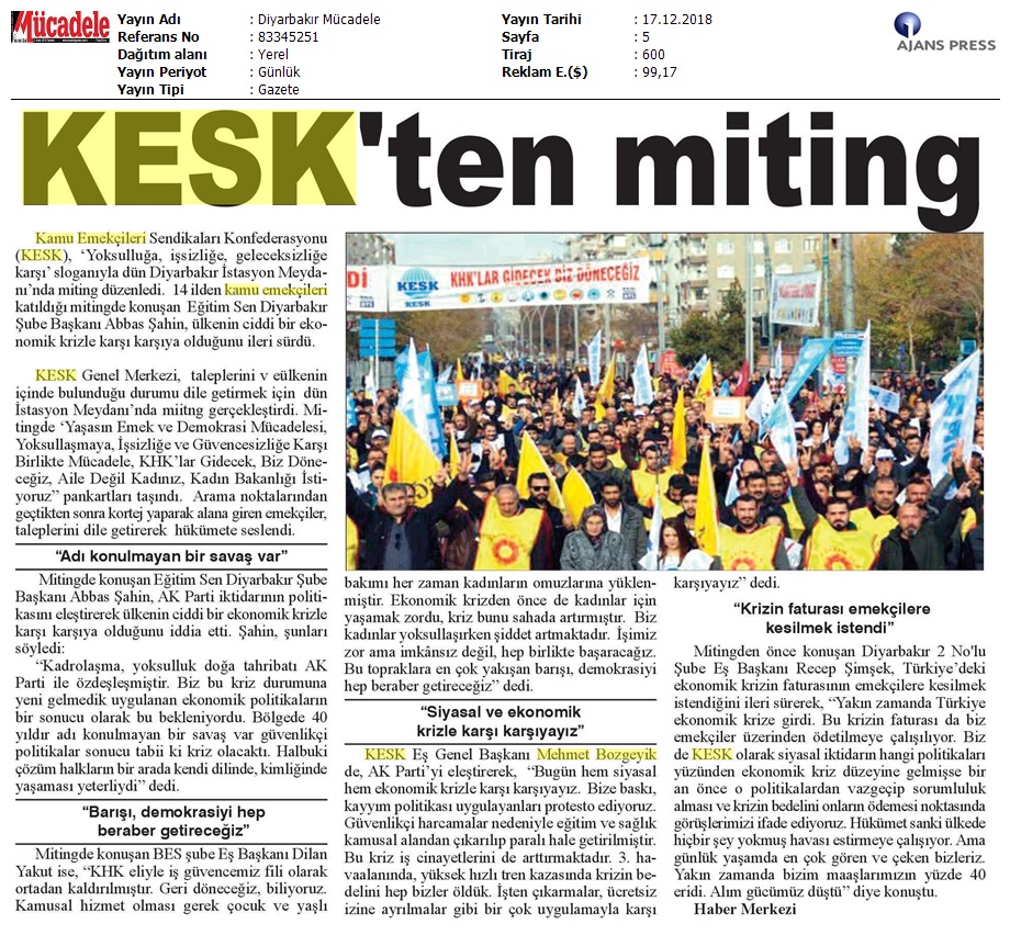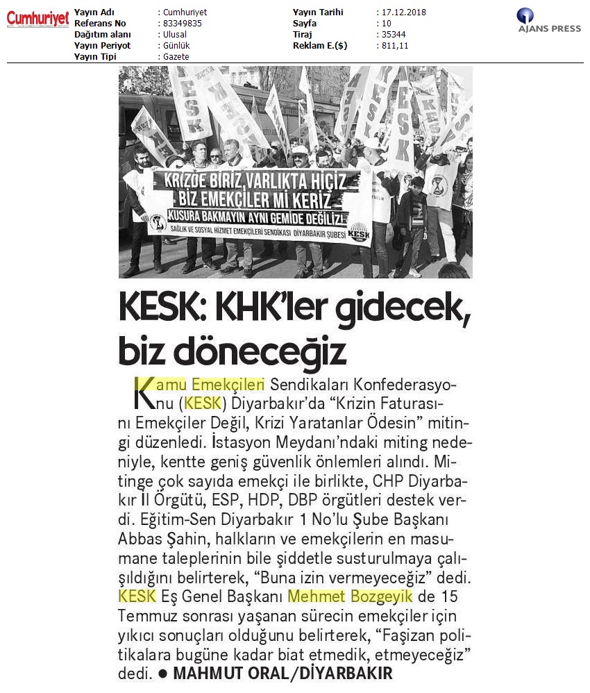 17 Aralık 2018 17 Aralık Basında KESK Haberleri 17 Aralık Basında KESK Haberleri # BASINDA KESK # MANŞET