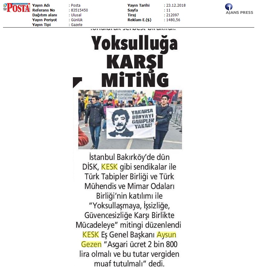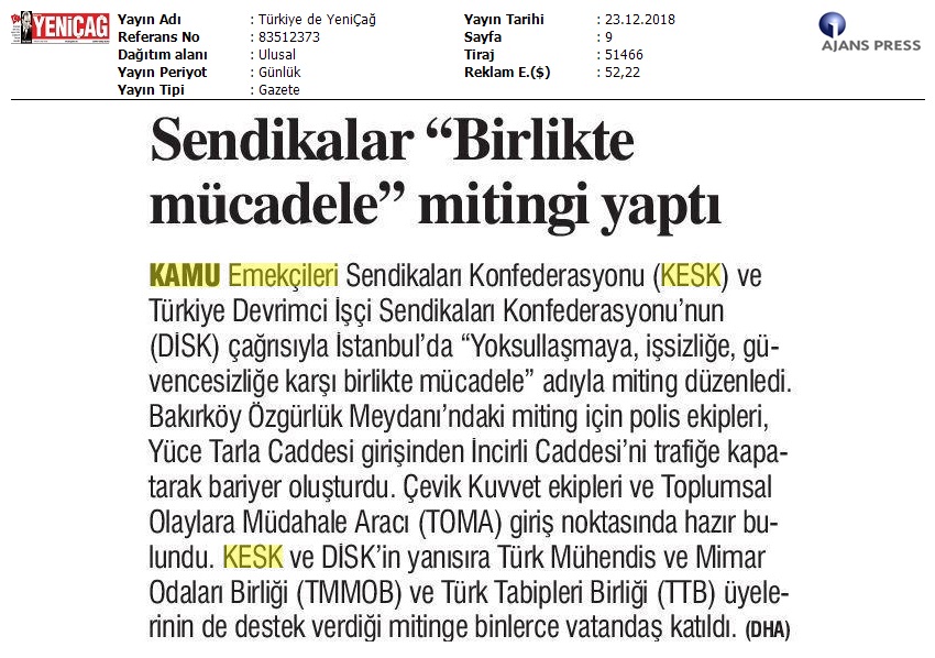 23 Aralık 2018 Yazılı Basında 22 Aralık İstanbul Bölge Mitingi https://www.youtube.com/playlist?list=PL7t6Ad78bKdwTZU52eibHg6mhNKv8pRfd # BASINDA KESK # MANŞET https://www.youtube.com/playlist?list=PL7t6Ad78bKdwTZU52eibHg6mhNKv8pRfd